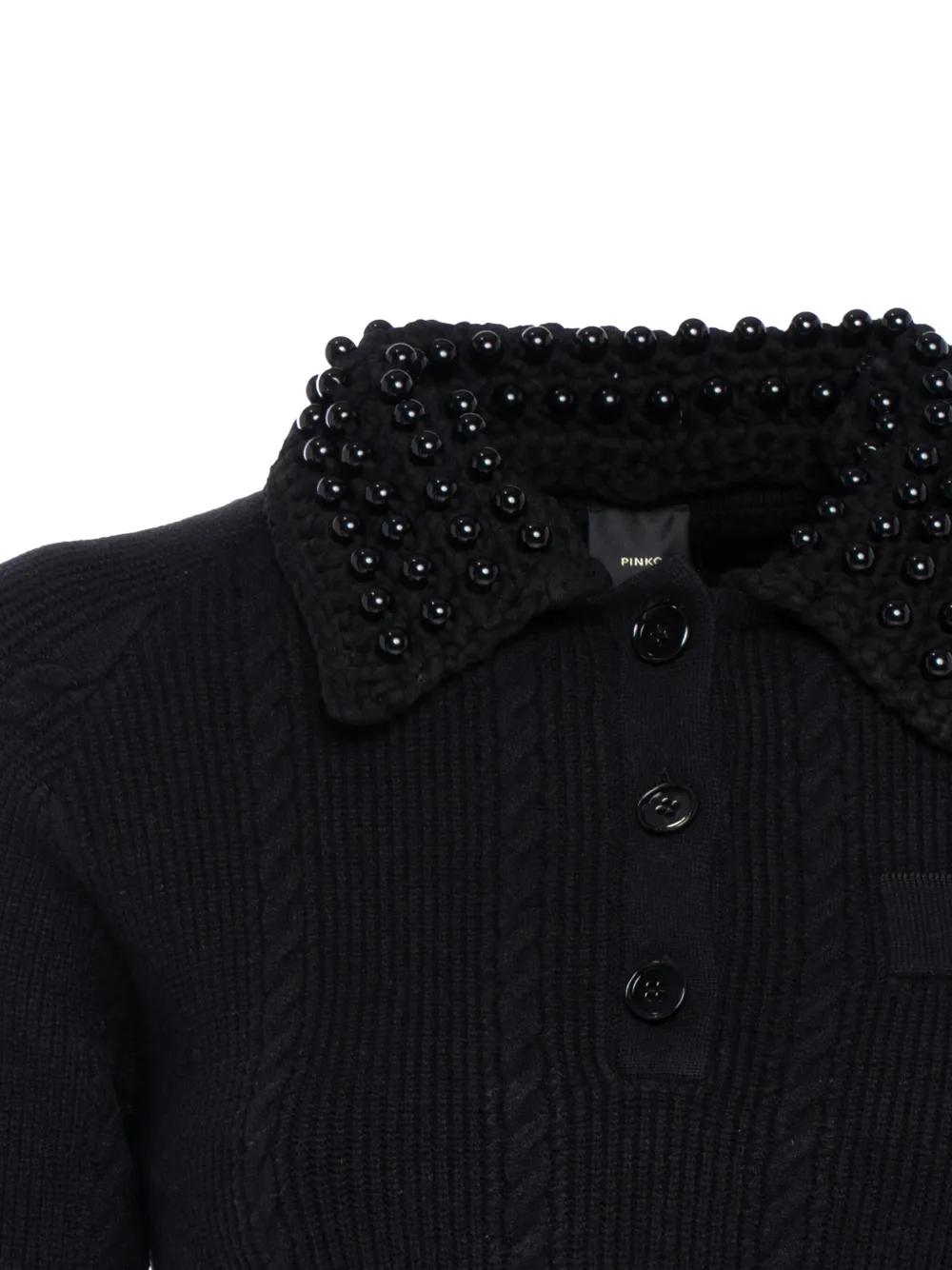 PINKO beaded-collar cable-knit knitted polo top - Black