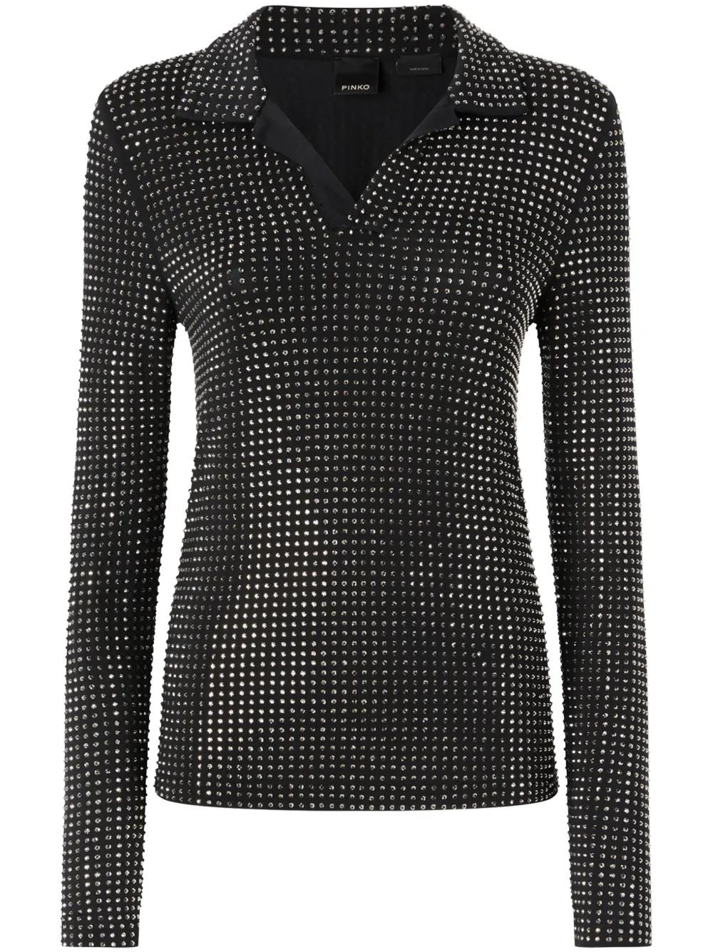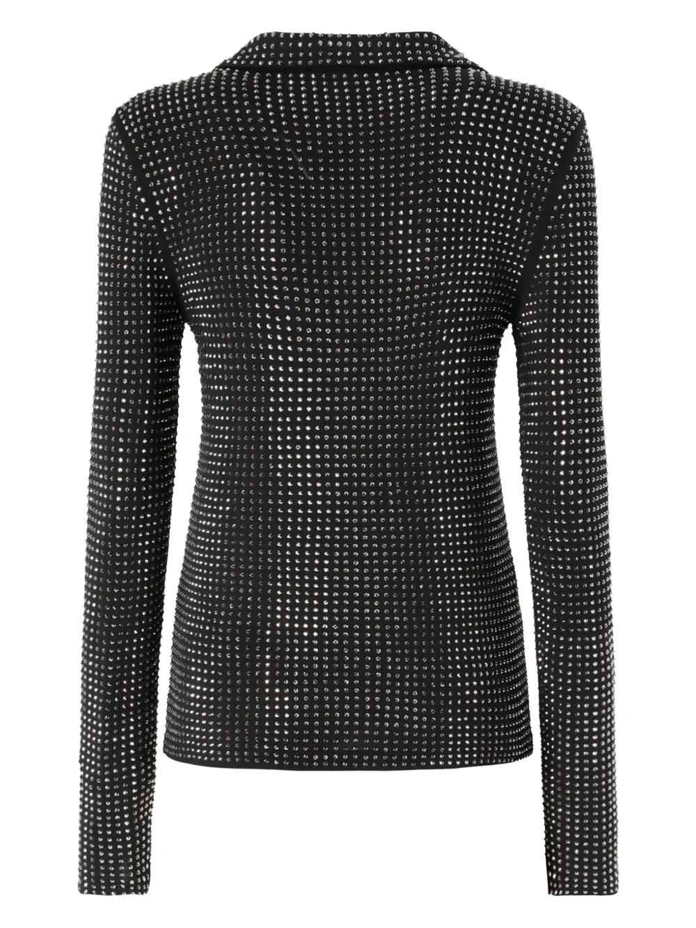 black modal blend stud embellishment V-neck long sleeves straight hem