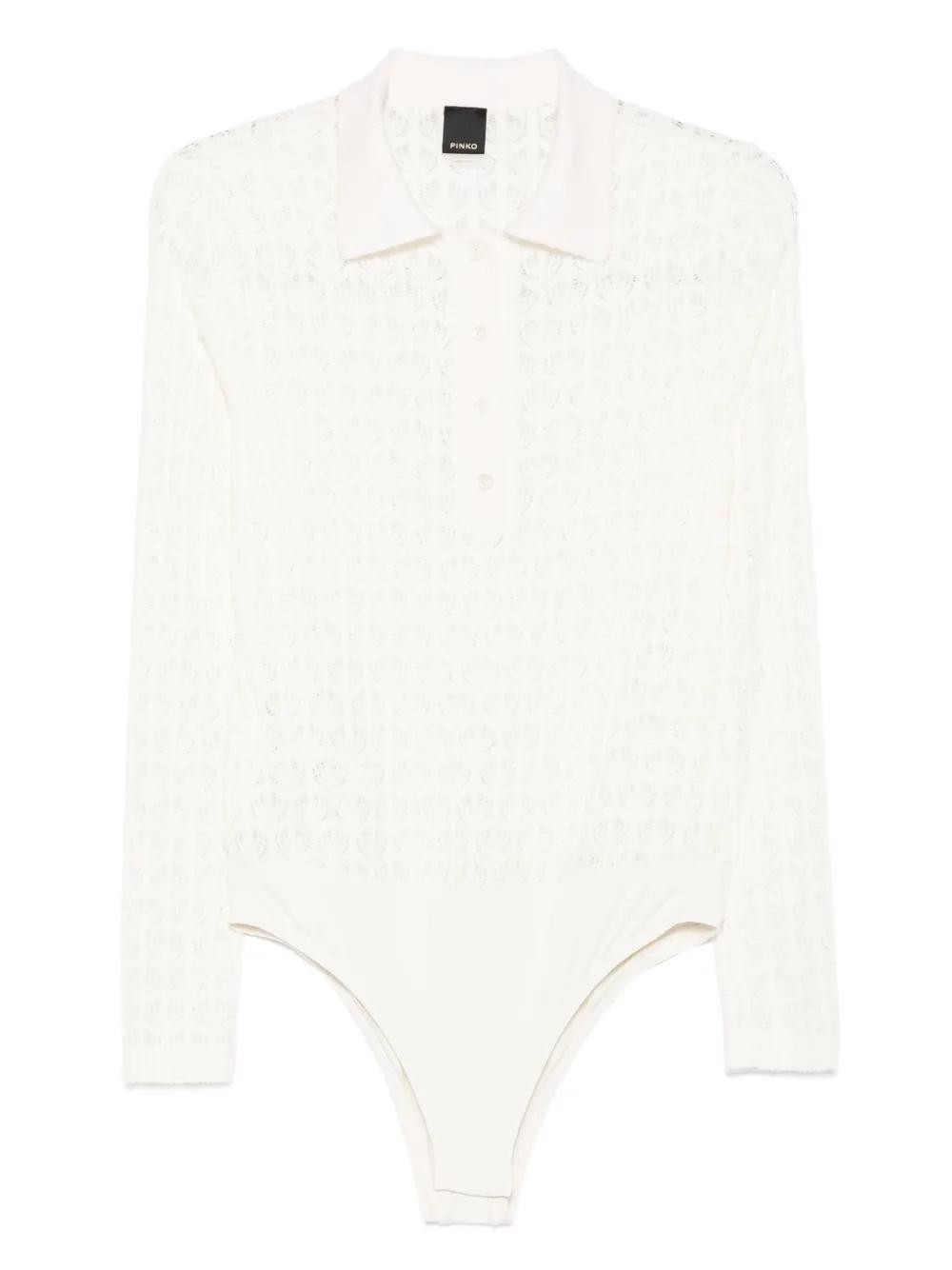 PINKO lace-panel polo bodysuit - White