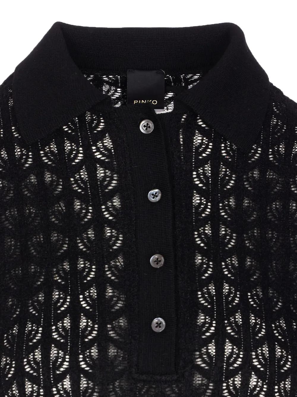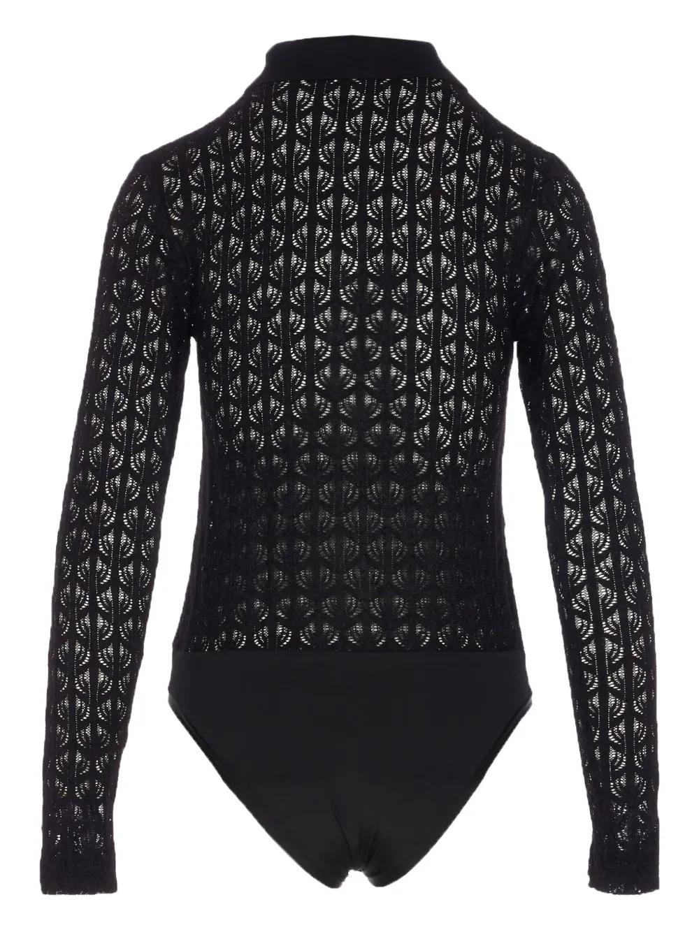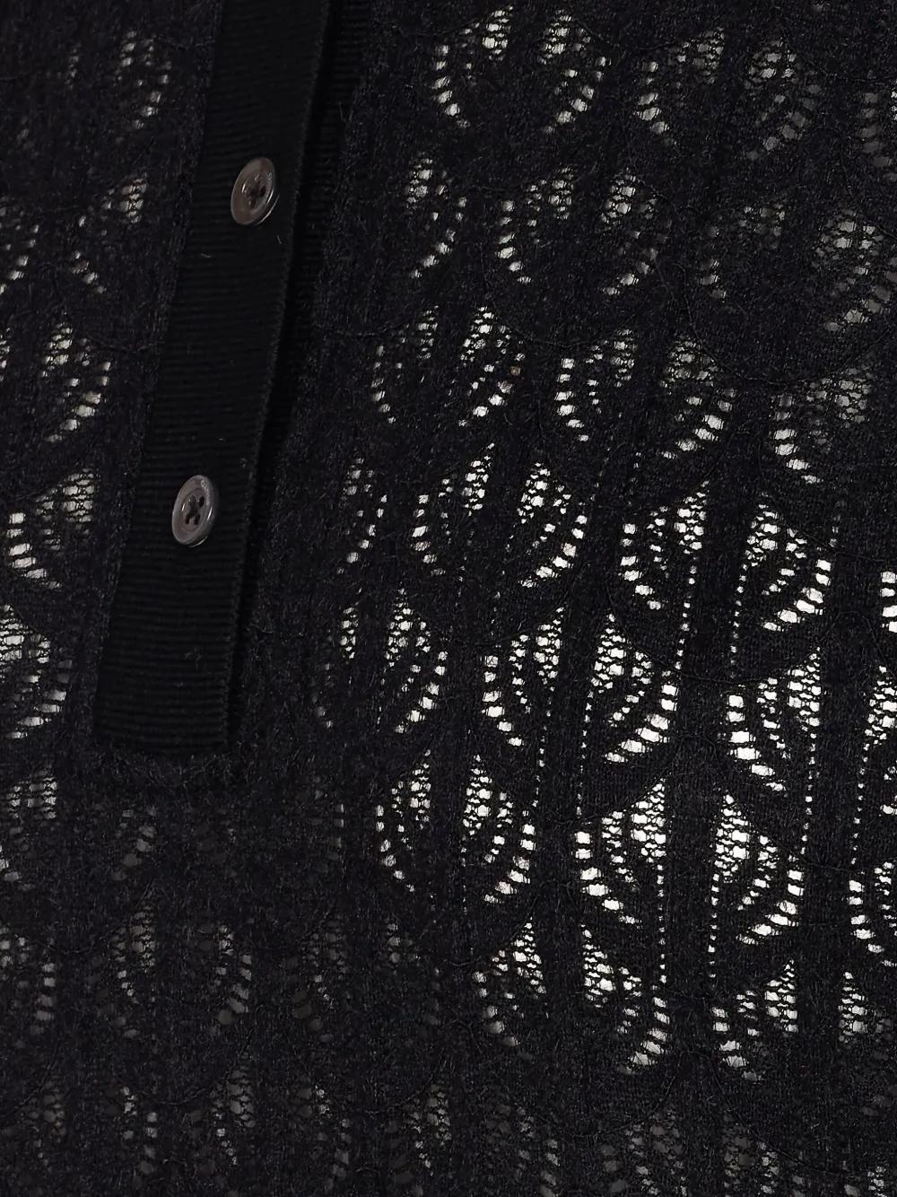 black polo neck button fastening long sleeves open knit lace panel Just a reminder that this piece must be tried on over your own garments.