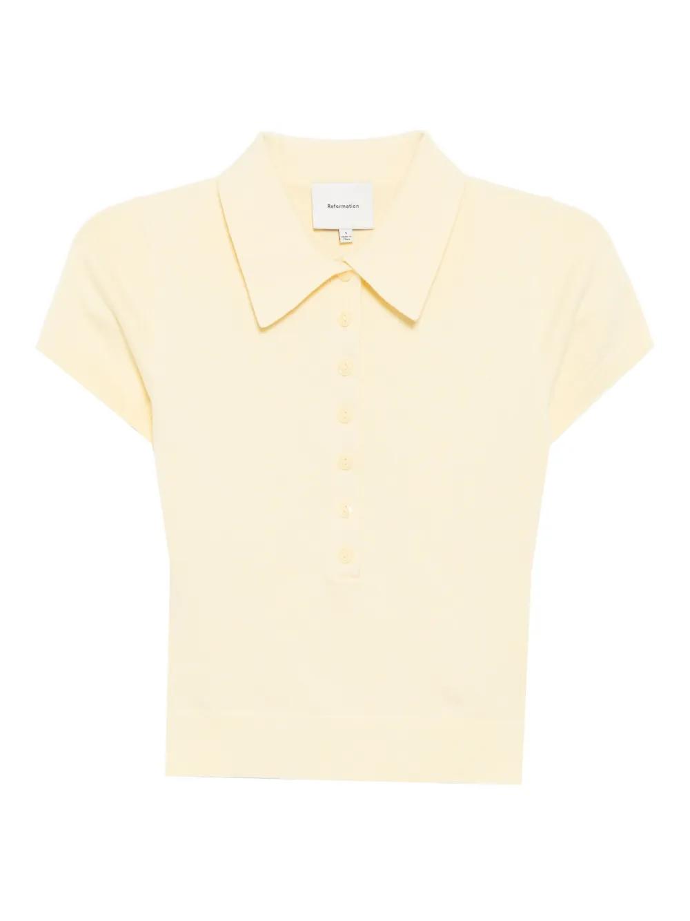 ivory white short front button fastening polo collar ribbed cuffs and hem