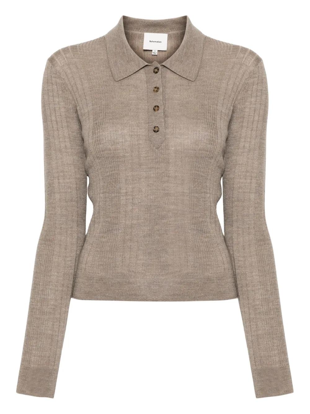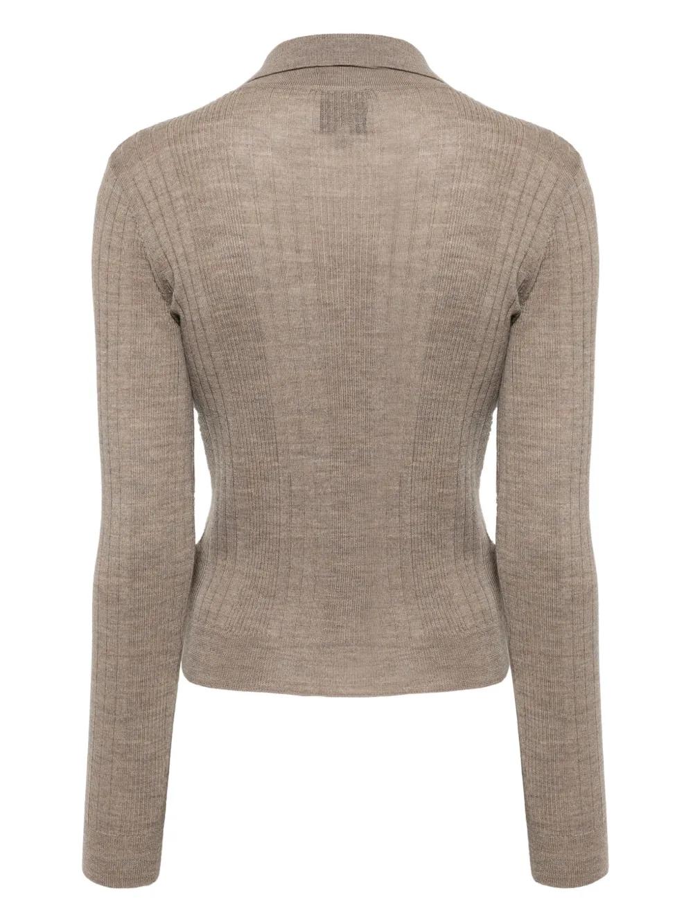 earth brown short front button fastening polo collar ribbed cuffs and hem