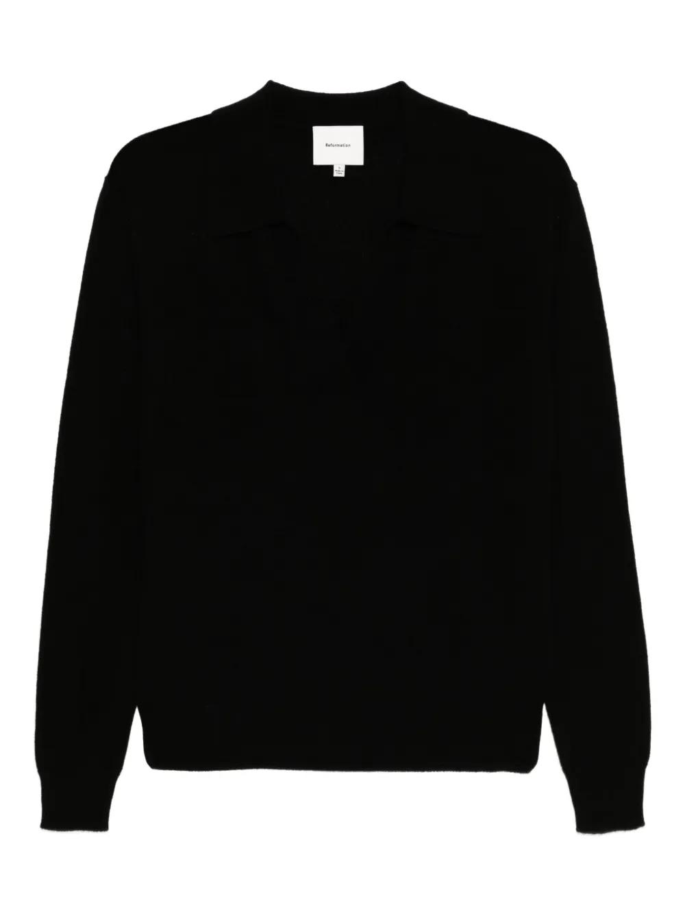 brown polo collar button fastening long sleeves knitted construction tonal stitching Just a reminder that this piece must be tried on over your own garments.
