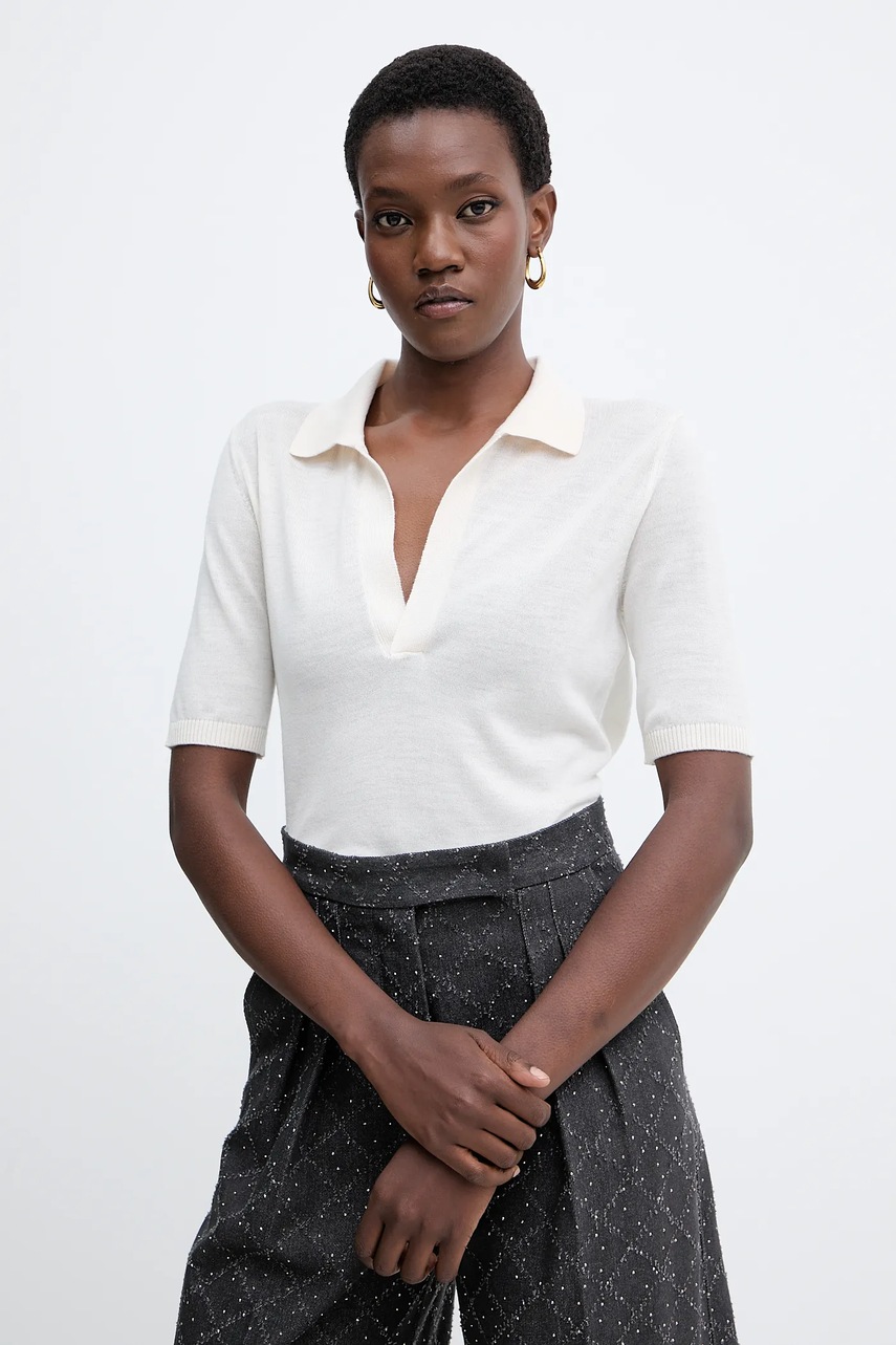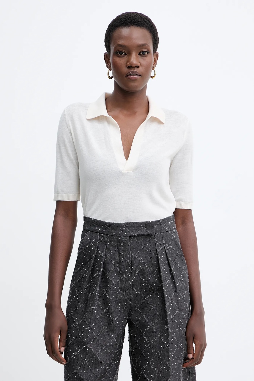 Simona Corsellini polo wełniane damski kolor beżowy A25CPMGE0501