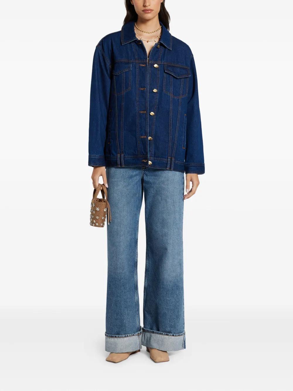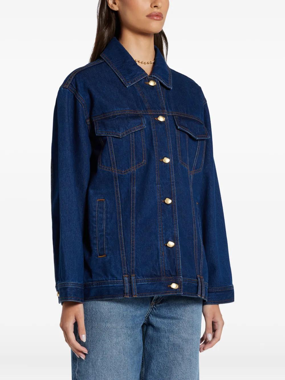 dark blue gold-tone button closure flap chest pockets long sleeves classic collar