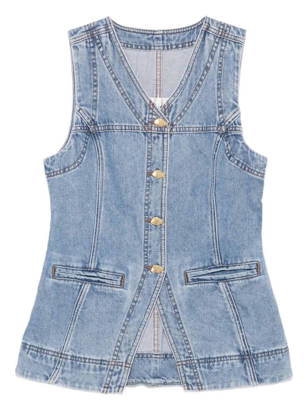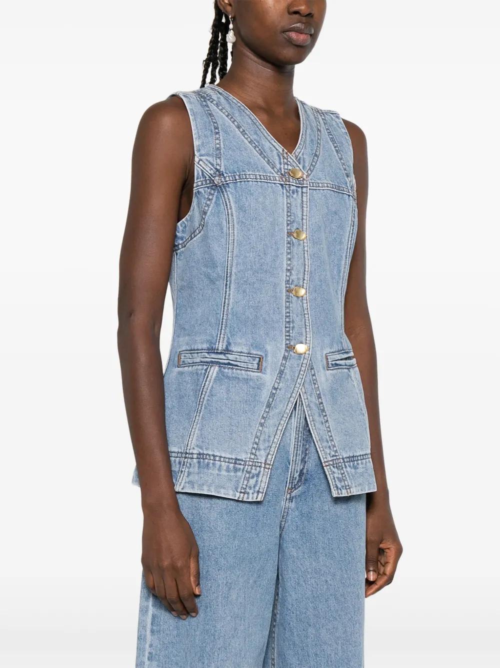 light blue sleeveless V-neck front button fastening front slit pockets seam detailing