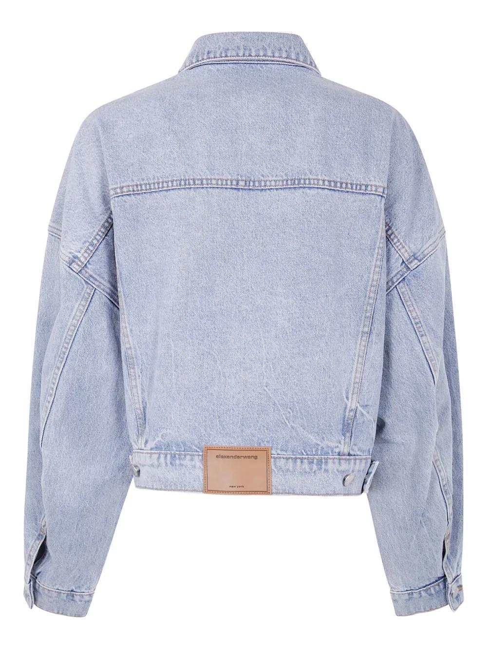 light blue classic collar chest flap pockets front button fastening logo patch to the rear