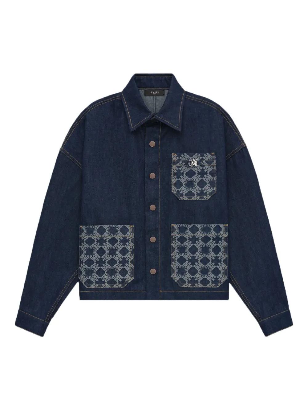 dark blue cotton button fastening patch pockets MA Quad monogram print