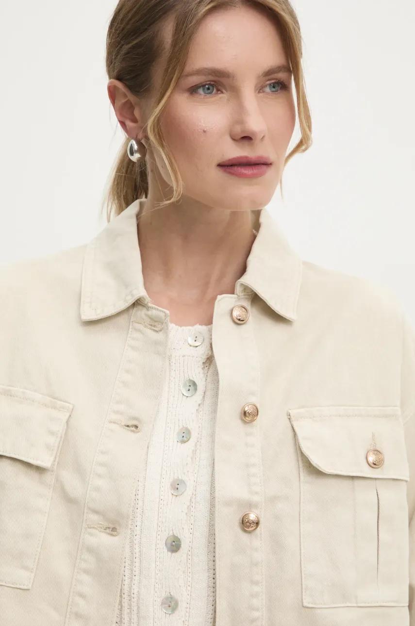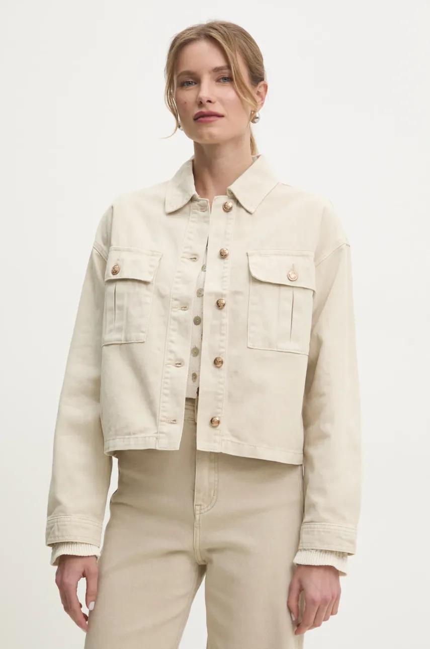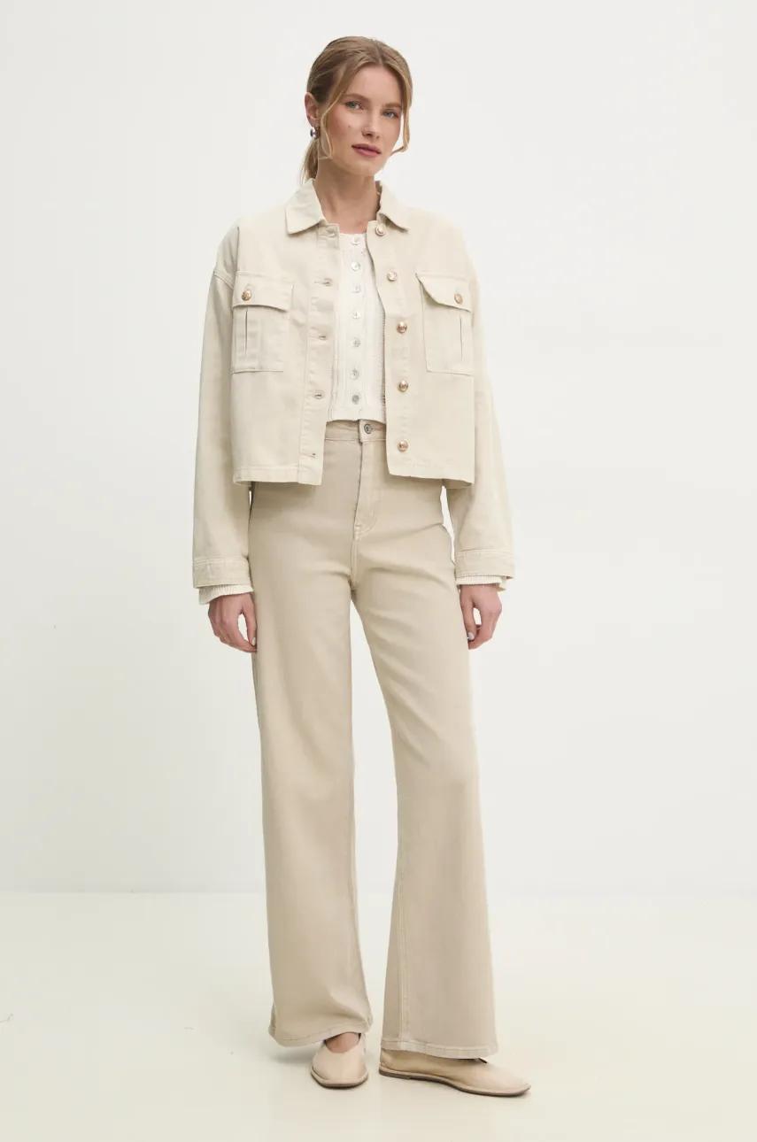 Answear.LAB kurtka jeansowa kolor beżowy przejściowa oversize