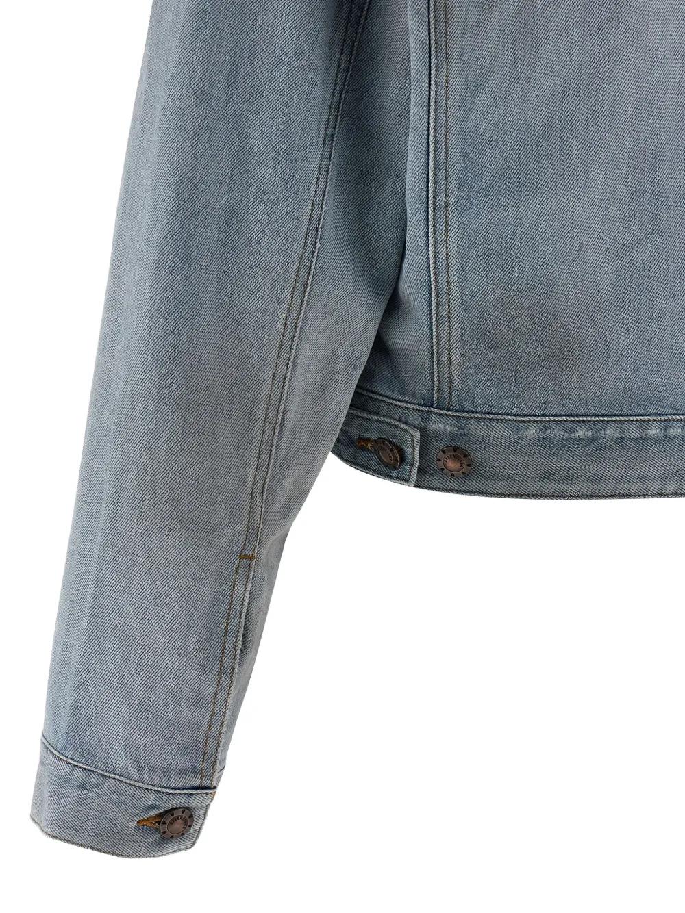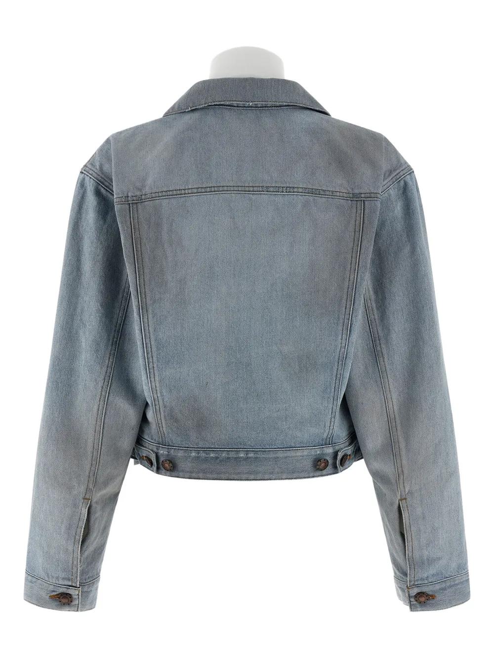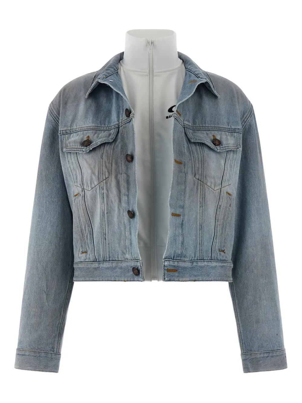 light blue stonewashed effect double layer detail shirt collar front button and zip closure buttoned cuffs