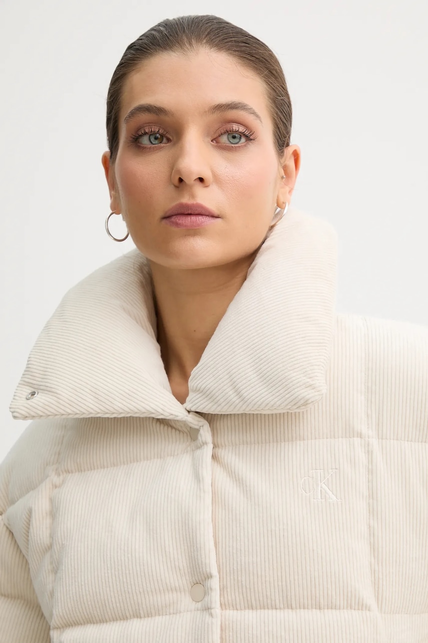 Calvin Klein Jeans kurtka sztruksowa puchowa kolor beżowy zimowa LV044D527G