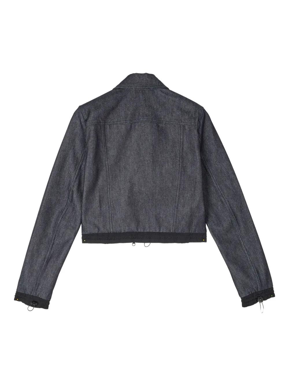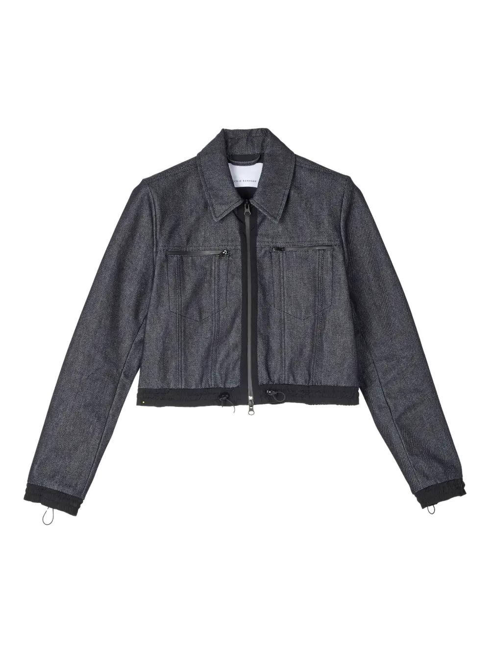 blue zip closure collared drawstring sleeve and hem cropped length