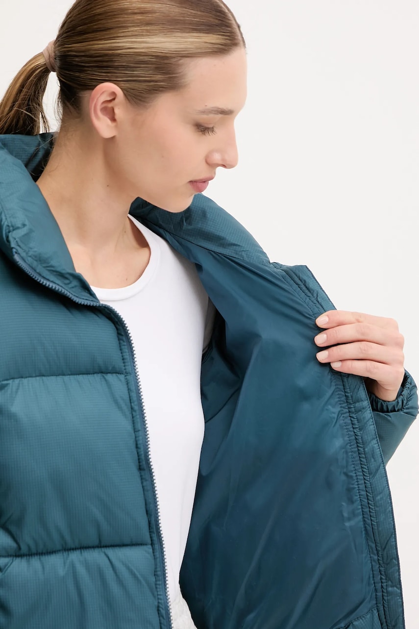 - Responsible Down Standard. Certyfikat R.D.S. gwarantuje, że producent wdrożył u siebie zalecenia, których celem jest zminimalizowanie cierpień ptaków hodowlanych (m.in. - zobowiązanie do zaniechania pozyskiwania puchu i pierza z żywych ptaków oraz karmienia ptaków siłą czy ścisła kontrola każdego etapu łańcucha dostaw przez profesjonalną, niezależną jednostkę cerytfikującą). 100% puchu i pierza, zawartego w produkcie, pochodzi z dostaw kontrolowanych. - Prosty, nie blokujący ruchów fason. - Rękawy wykończone wygodnym, elastycznym ściągaczem. - Podwyższony kołnierz i nieodpinany kaptur gwarantują dodatkową ochronę przed chłodem. - Kaptur regulowany za pomocą troczka, zwiększa ochronę przed wiatrem i deszczem. - Zapięcie na całej długości na suwak wyposażony w wewnętrzną klapkę przeciwsztormową. - Dwie wsuwane i zapinane na zatrzask kieszenie boczne. - Długość rękawa: 65 cm. - Długość: 98 cm. - Szerokość pod pachami: 50 cm. - Szerokość w ramionach: 40 cm. - Wymiary podane dla rozmiaru: 36.