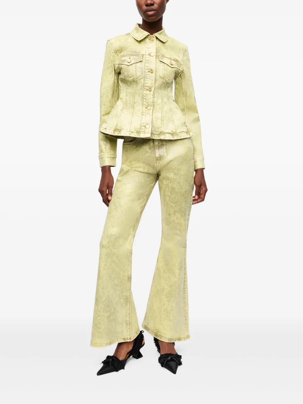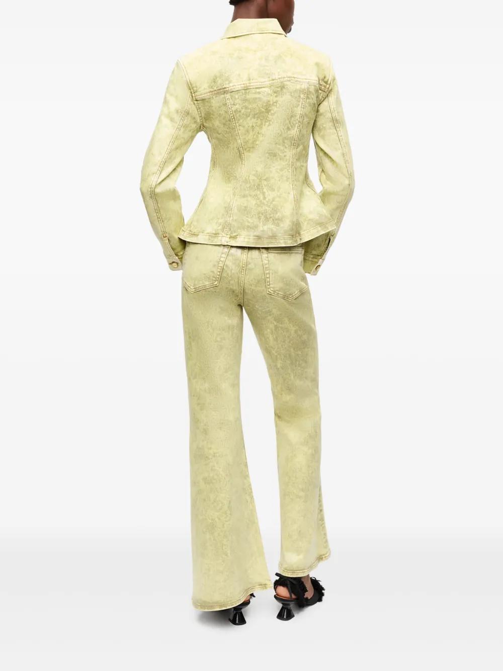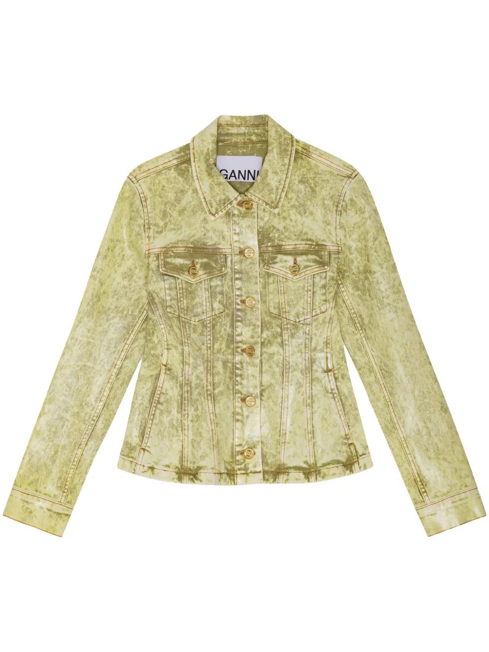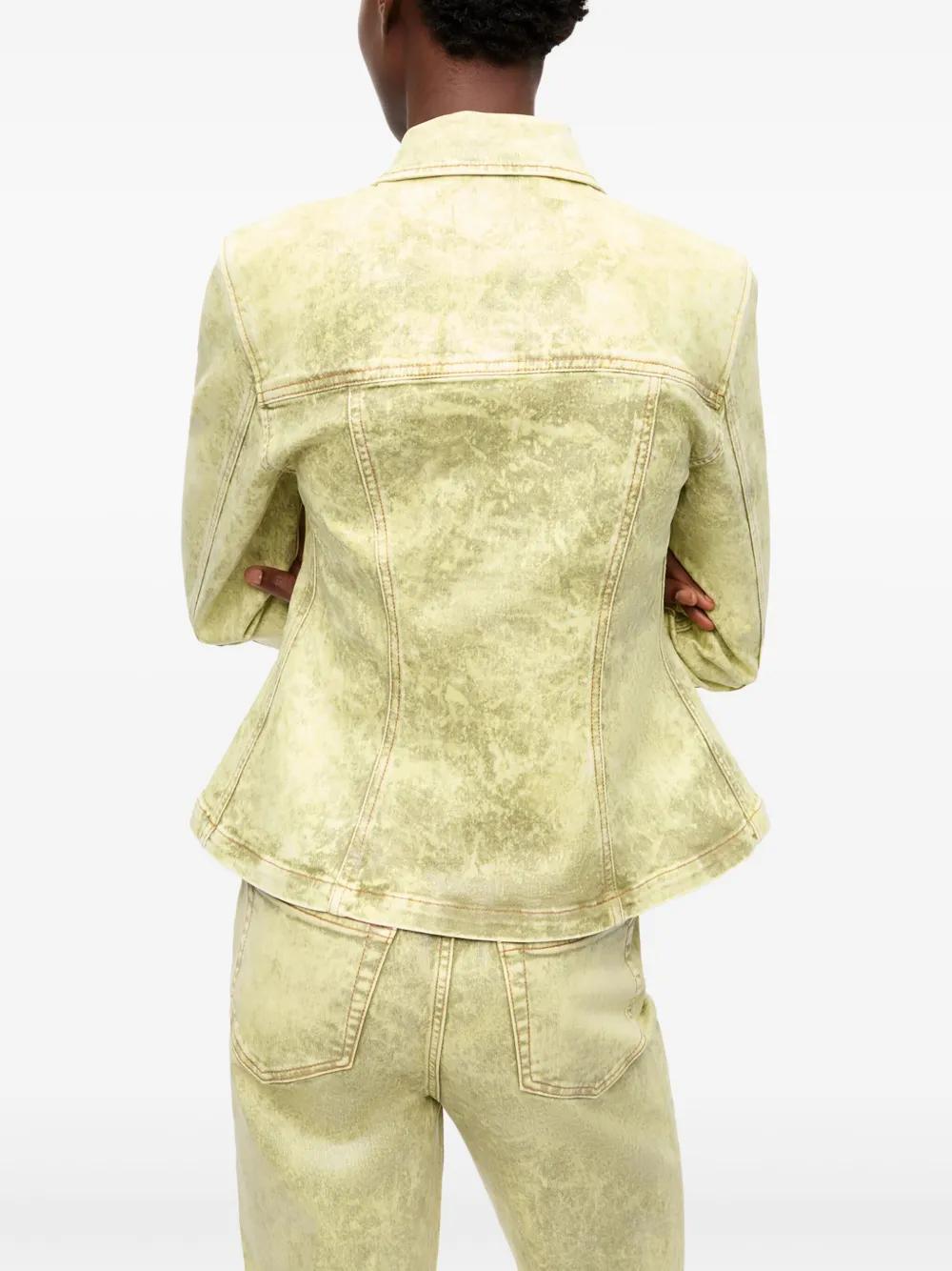 apple green front button fastening two chest flap pockets two side welt pockets buttoned cuffs