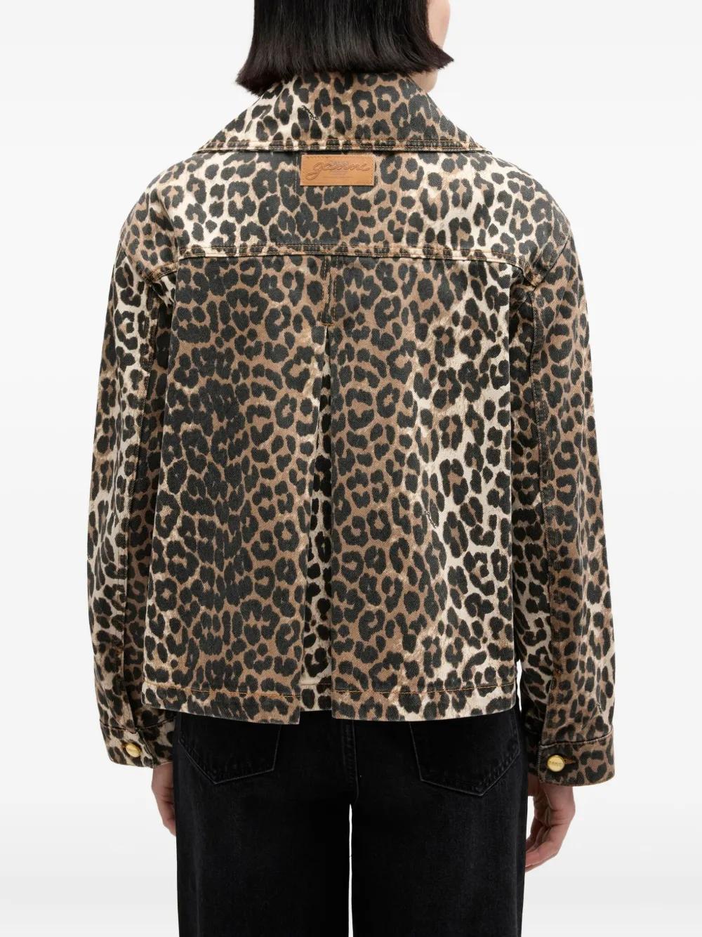 brown and black leopard print point collar button fastening chest flap pockets long sleeves