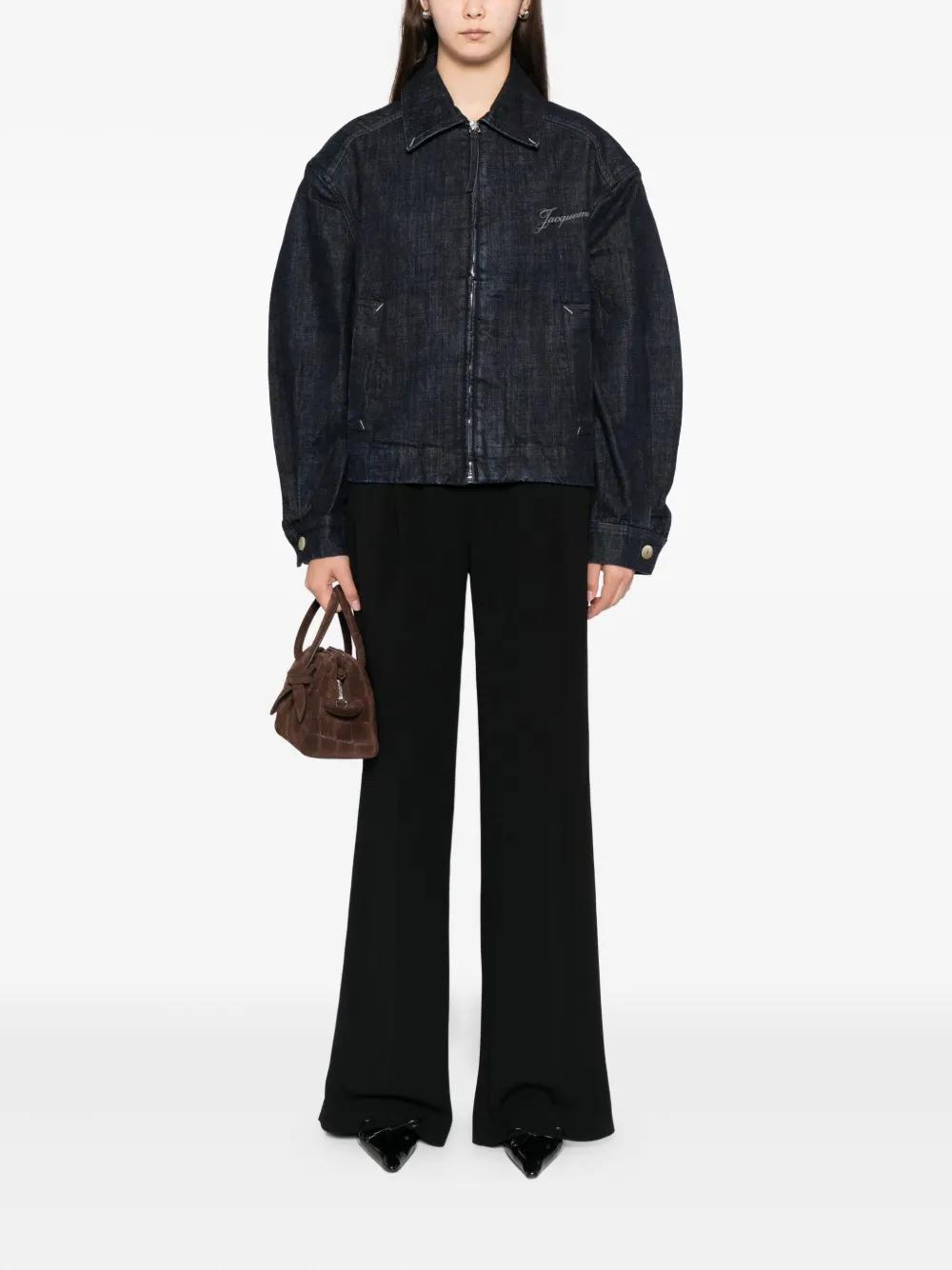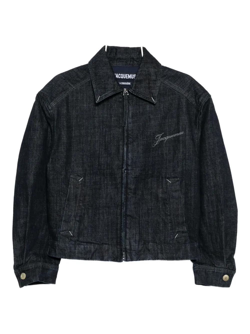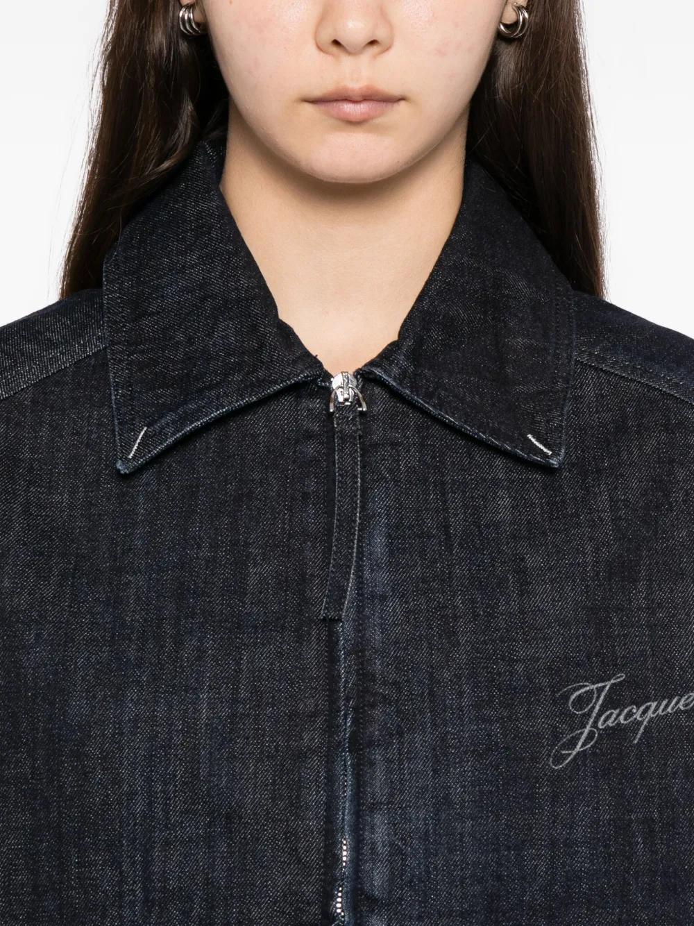 dark blue front zip fastening two front welt pockets buttoned cuffs