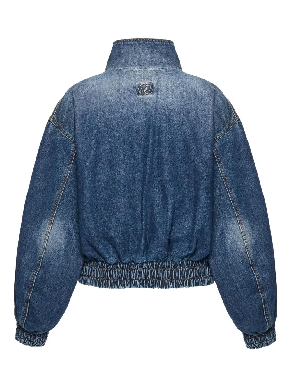 blue zip fastening high neck elasticated hem front flap pockets elasticated cuffs