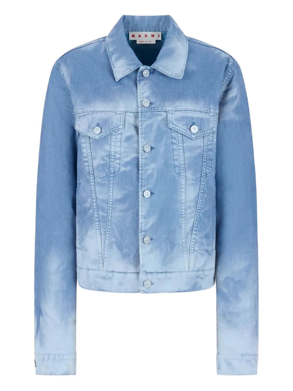 light blue front button fastening chest flap pockets contrasting stitching classic collar