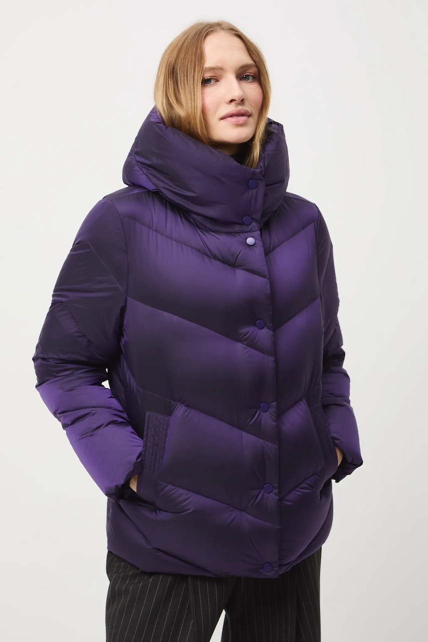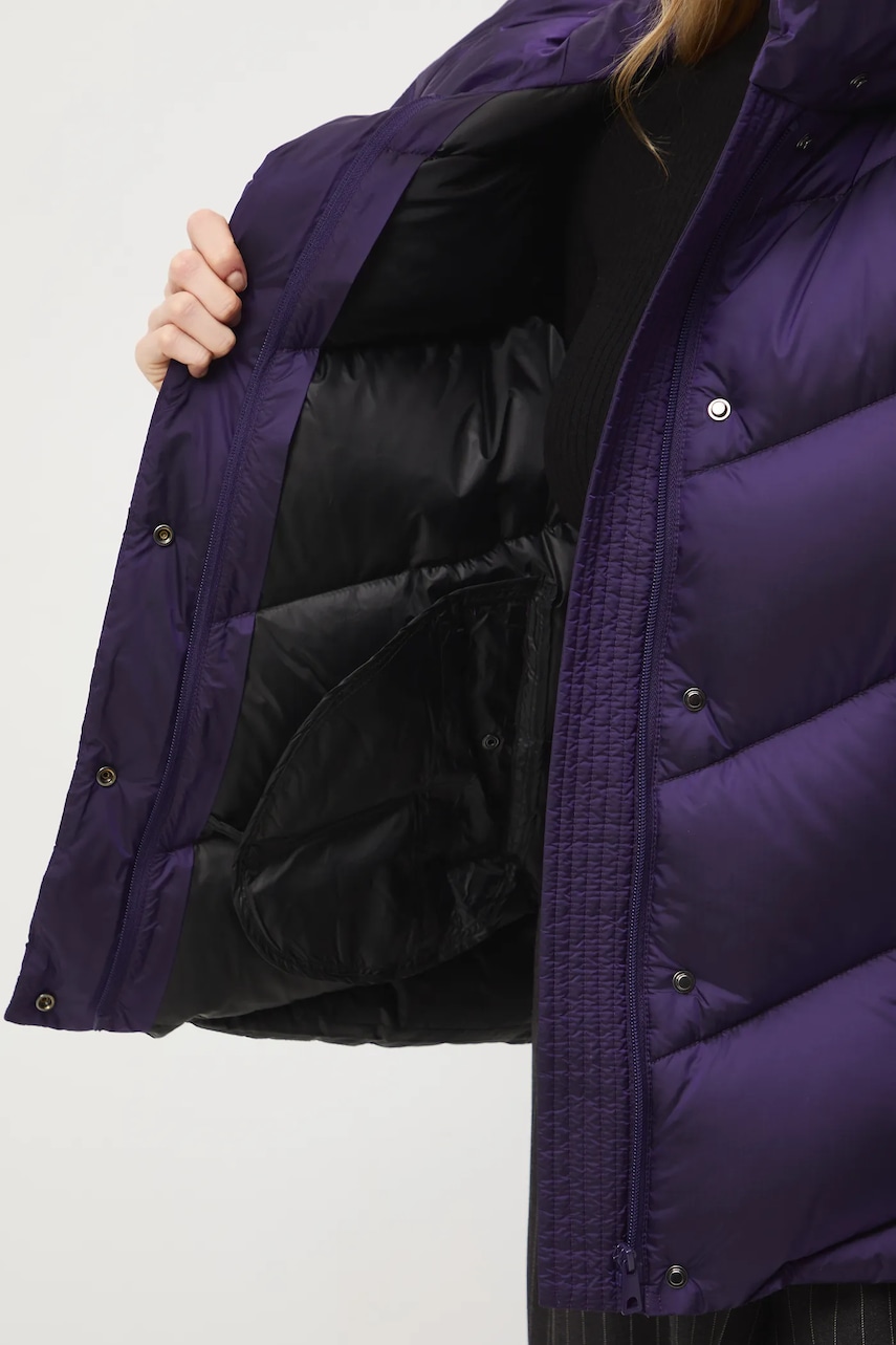 - Fason oversize. - Zapięcie na suwak i zatrzaski. - Podwyższony kołnierz. - Model z kapturem. - Dwie wsuwane kieszenie boczne. - Ocieplony model na podszewce. - Pikowany model. - Wypełnienie z naturalnego puchu i pierza. - Długość rękawa: 66 cm. - Długość: 70 cm. - Szerokość w biuście: 61 cm. - Szerokość w barkach: 43,5 cm. - Wymiary podane dla rozmiaru: S.