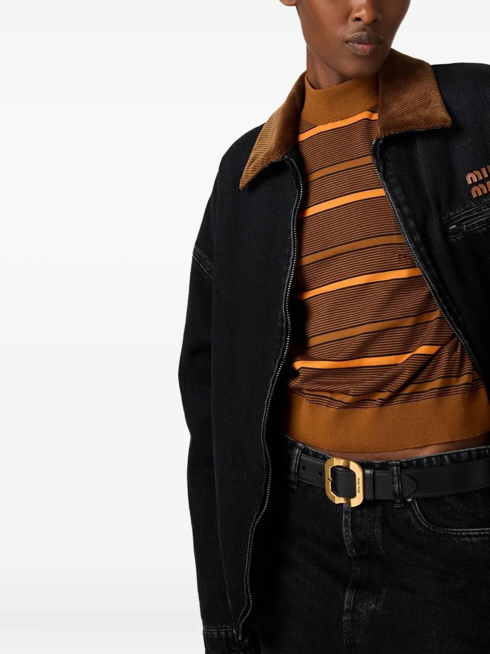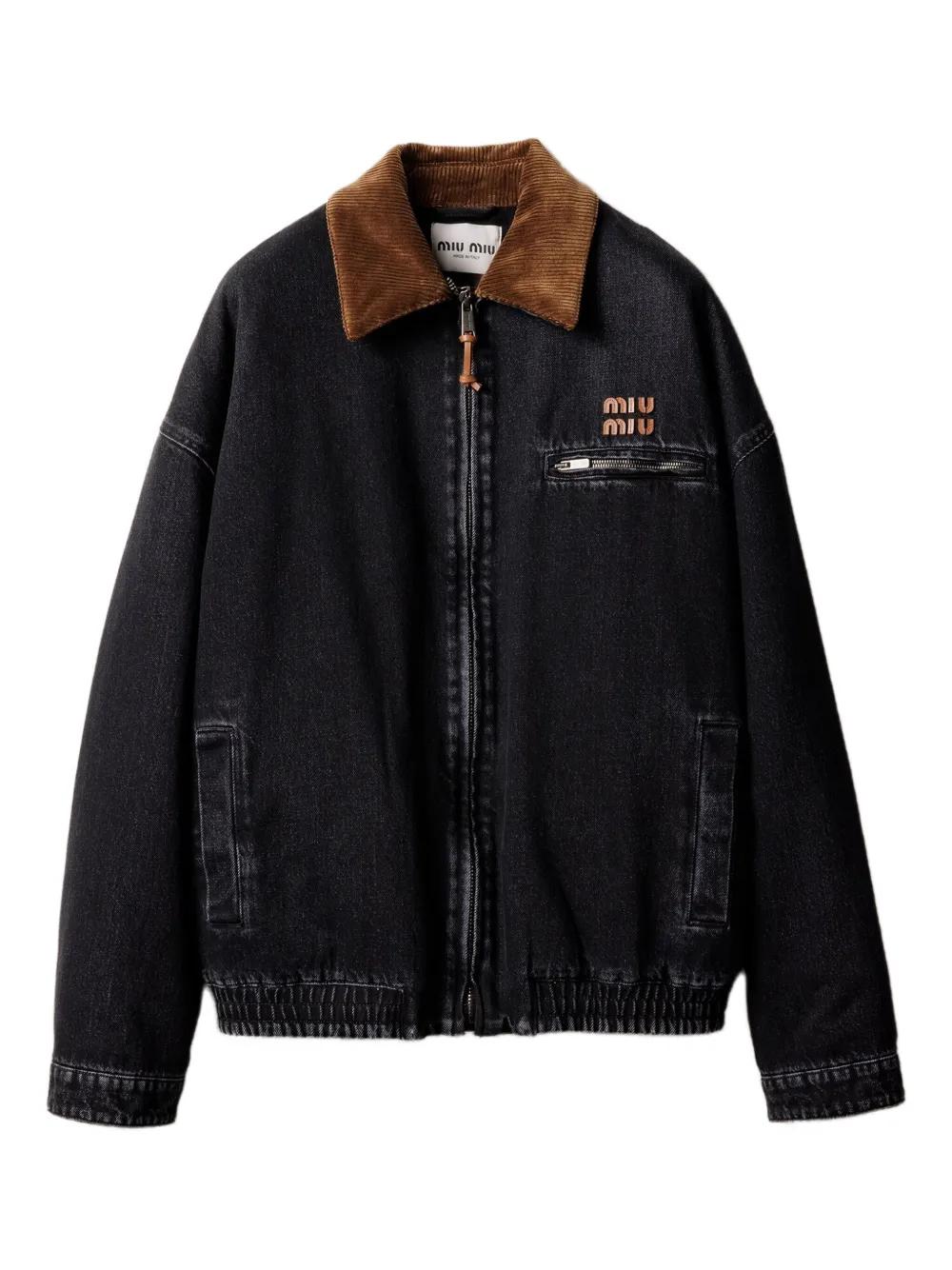 black washed treatment corduroy collar zip closure welt breast pocket low welt pockets elasticised hem
