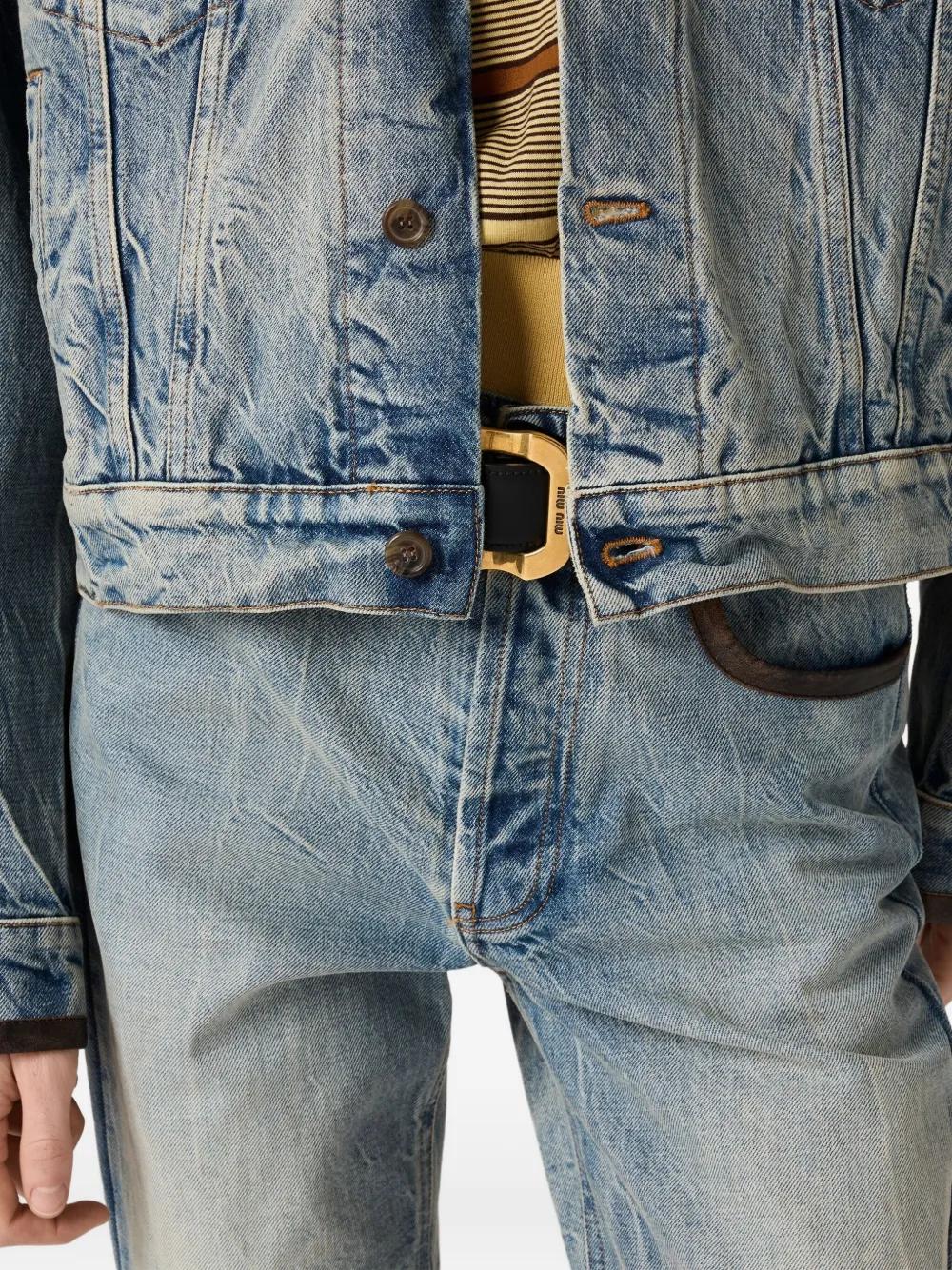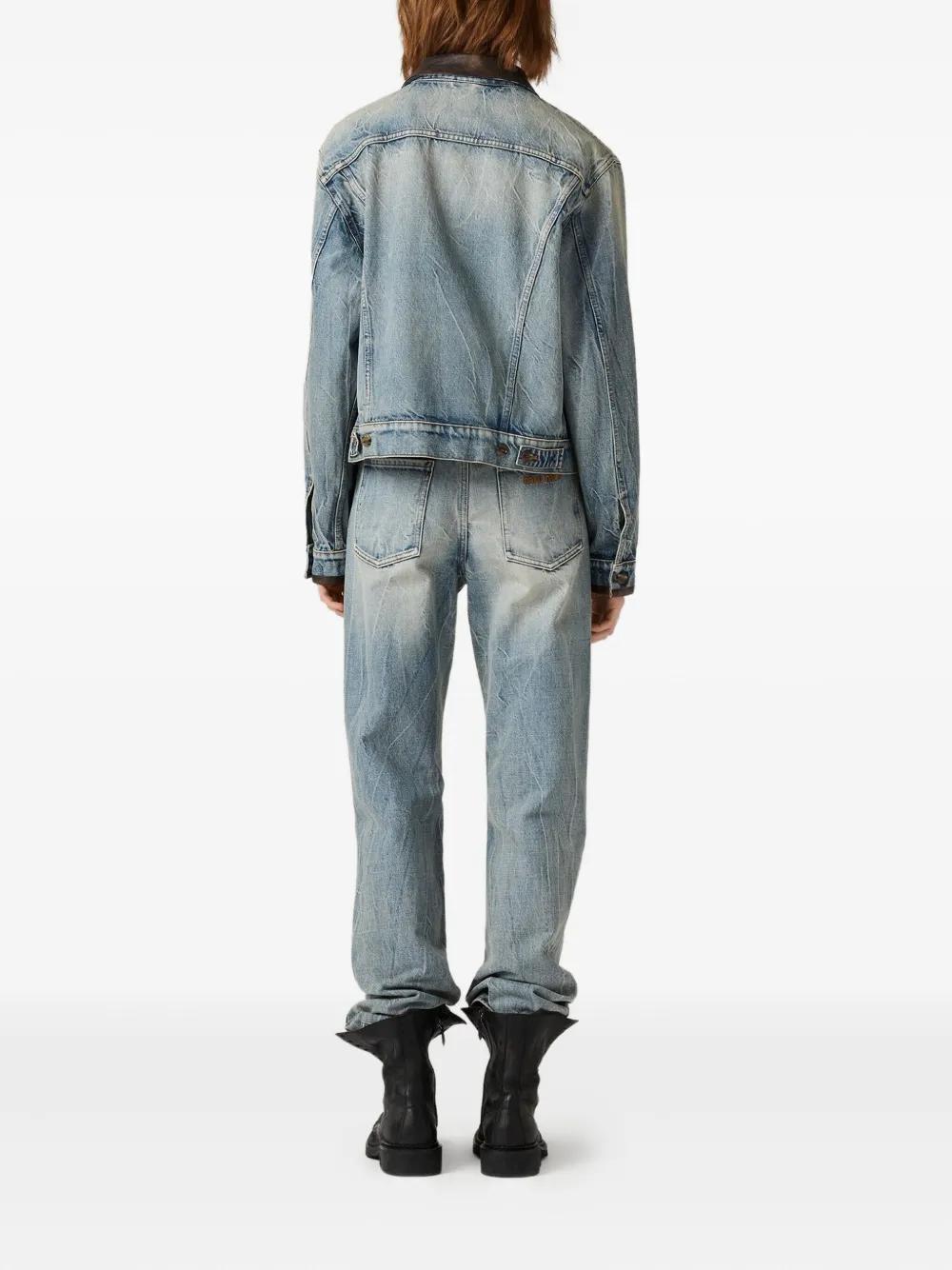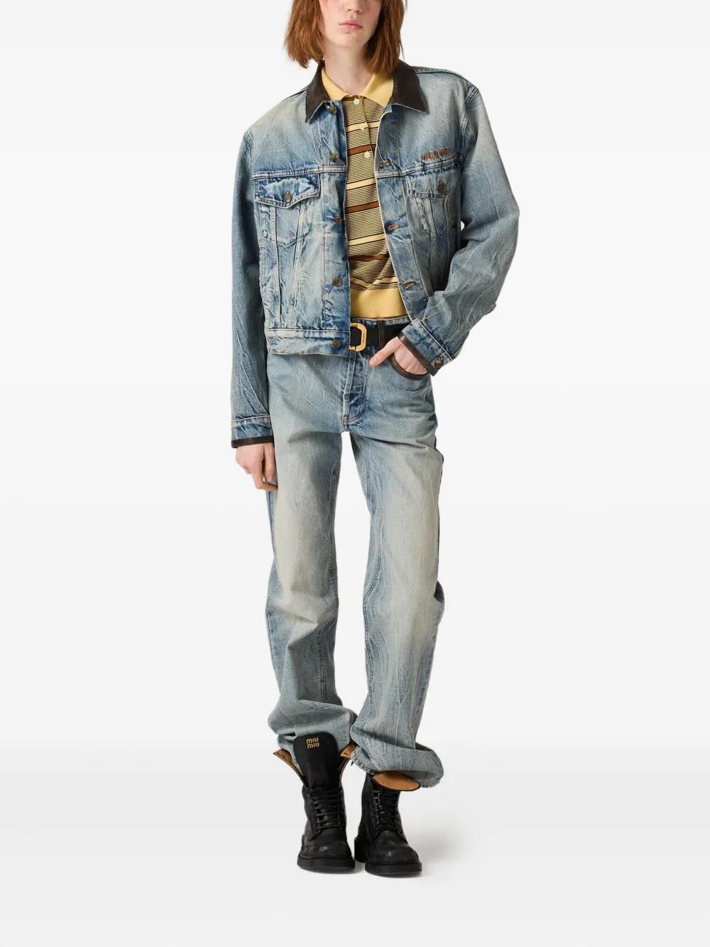 light blue cotton washed-effect denim leather collar button closure buttoned cuffs flap pockets