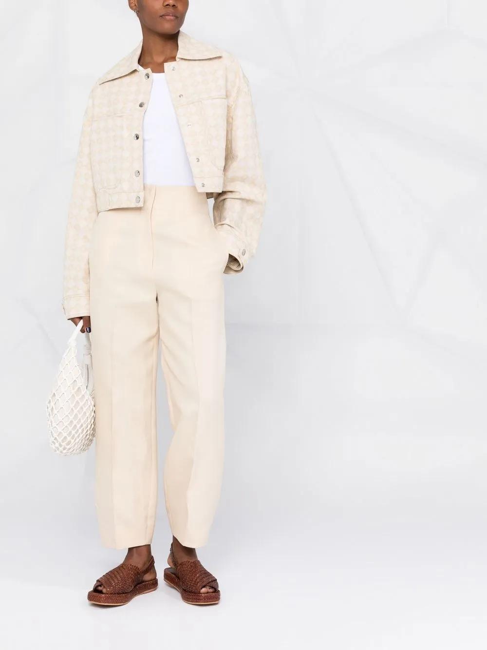 Nanushka logo pattern boxy denim jacket - Neutrals