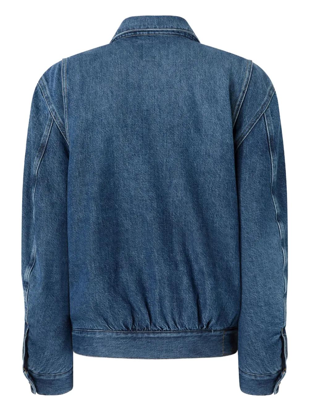 dark-blue cotton construction button fastening flap pockets cinched hemline point collar
