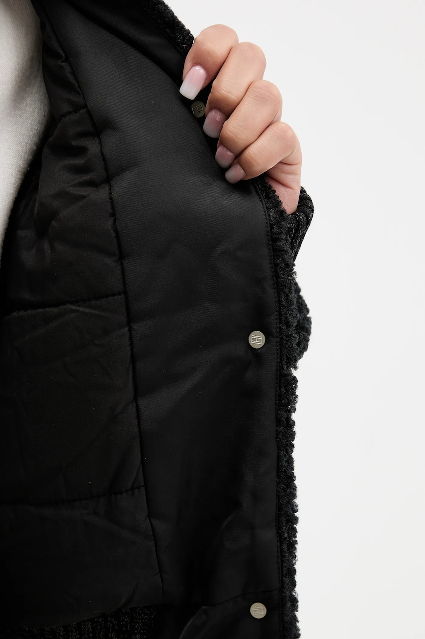 - Produkt zawiera materiały z włókien pochodzących z recyklingu. - Wygodne zapięcie na zatrzaski ułatwia zakładanie i zdejmowanie. - Rękawy i dolna krawędź wykończona wygodnym, elastycznym ściągaczem. - Zapinane kieszenie zewnętrzne. - Długie zapięcie na guziki. - Długość rękawa: - Długość: - Szerokość pod pachami: - Szerokość w ramionach: - Wymiary podane dla rozmiaru: