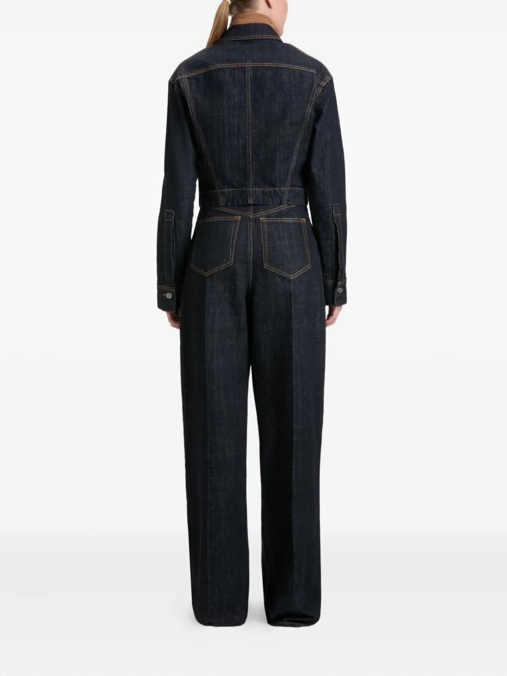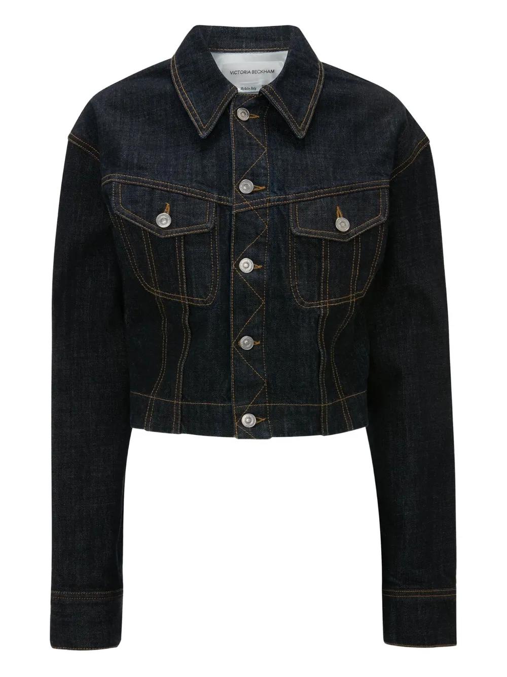 indigo rinse classic collar chest pockets long sleeves button cuffs cropped hem