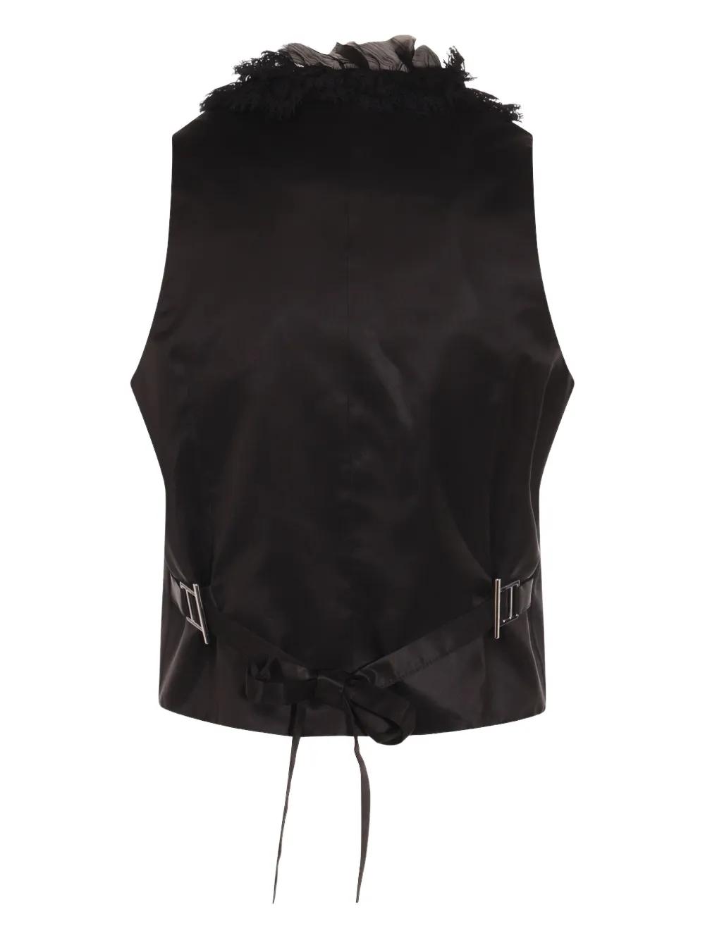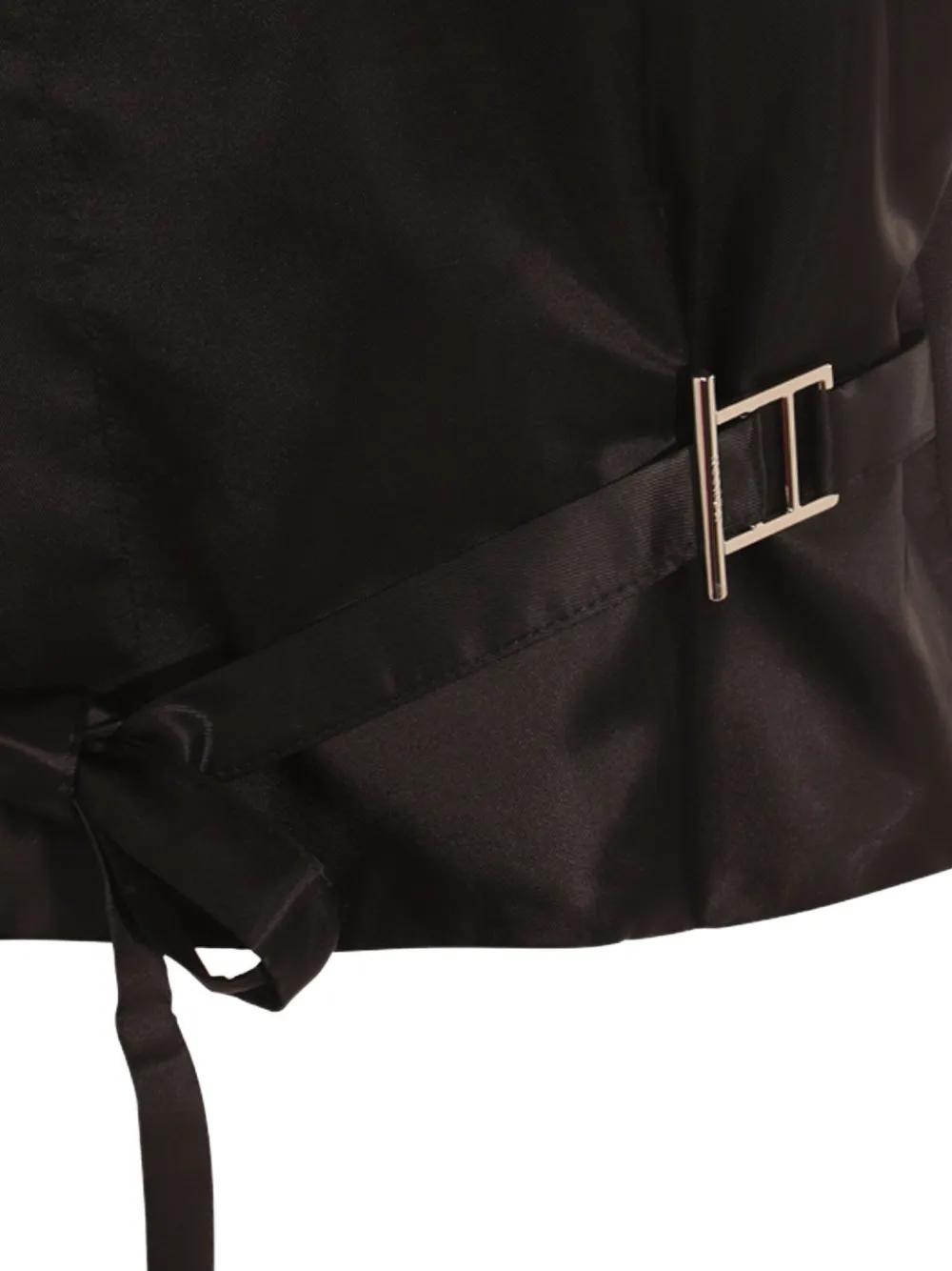 black double-breasted fastening lace trim sleeveless slide-adjuster fastening satin finish