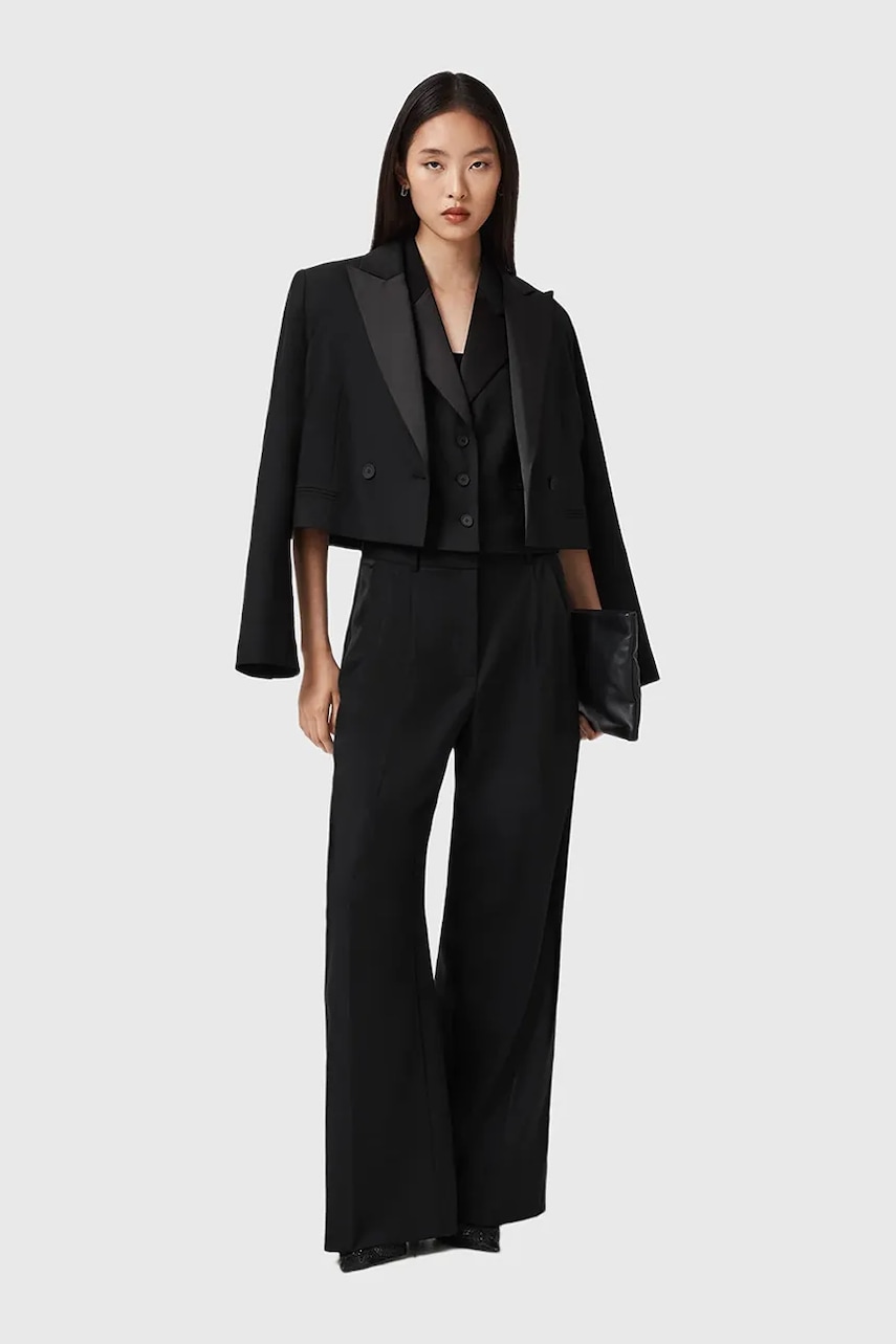 AllSaints kamizelka z dodatkiem wełny kolor czarny jednorzędowa W053QD