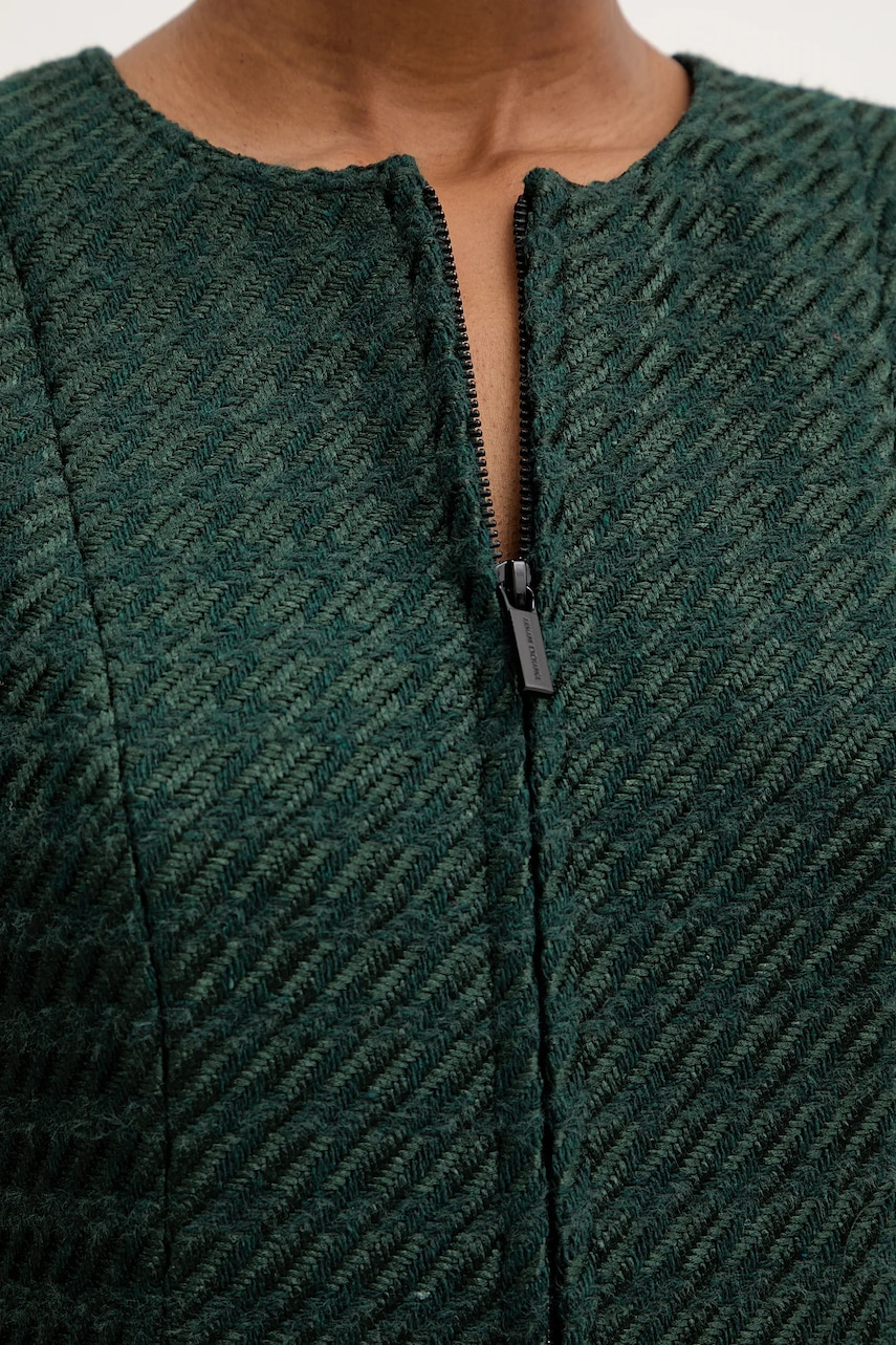 - Wygodne zapięcie na suwak ułatwia zakładanie i zdejmowanie. - Dodatkowa warstwa materiału w postaci podszewki. - Z przodu dwie wsuwane kieszenie, które ułatwiają bezpieczne przechowywanie drobiazgów. - Długość: 67 cm. - Szerokość pod pachami: 40 cm. - Wymiary podane dla rozmiaru: 36.