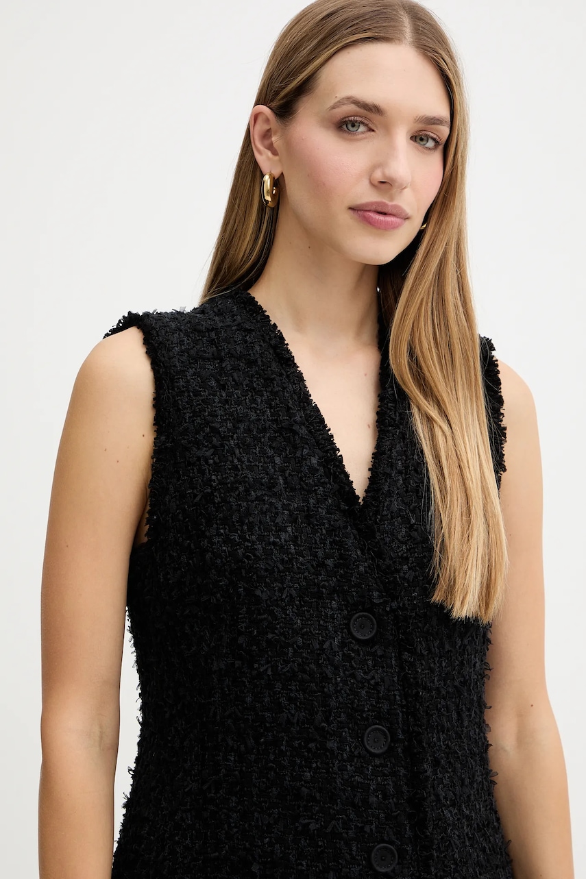 BOSS kamizelka z domieszką wełny kolor czarny jednorzędowa 50549128
