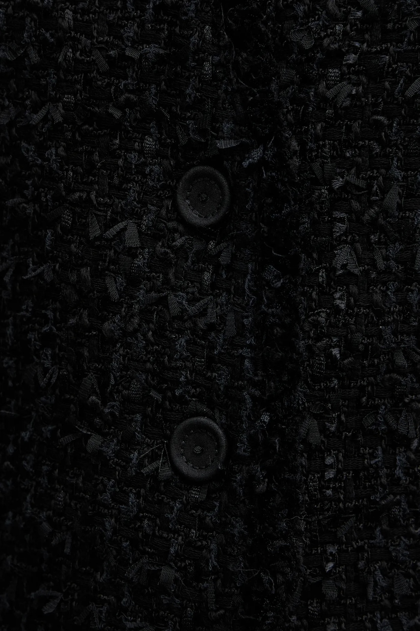 - Model wykonany częściowo z bawełny z recyklingu. - Prosty, nie blokujący ruchów fason. - Jednorzędowe zapięcie na guziki. - Model na podszewce. - Długość: 80 cm. - Szerokość pod pachami: 45 cm. - Wymiary podane dla rozmiaru: 38.