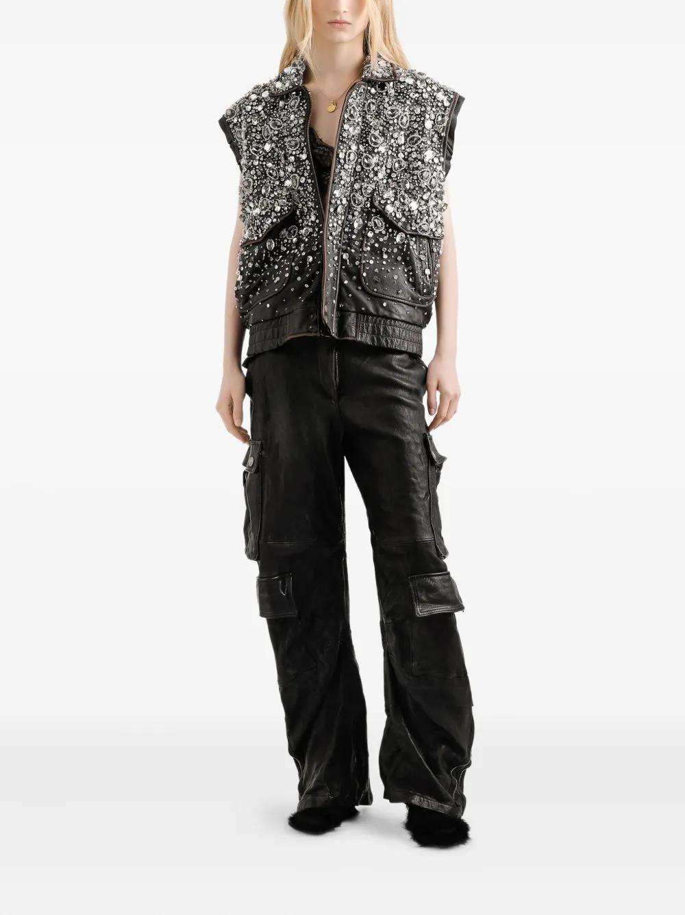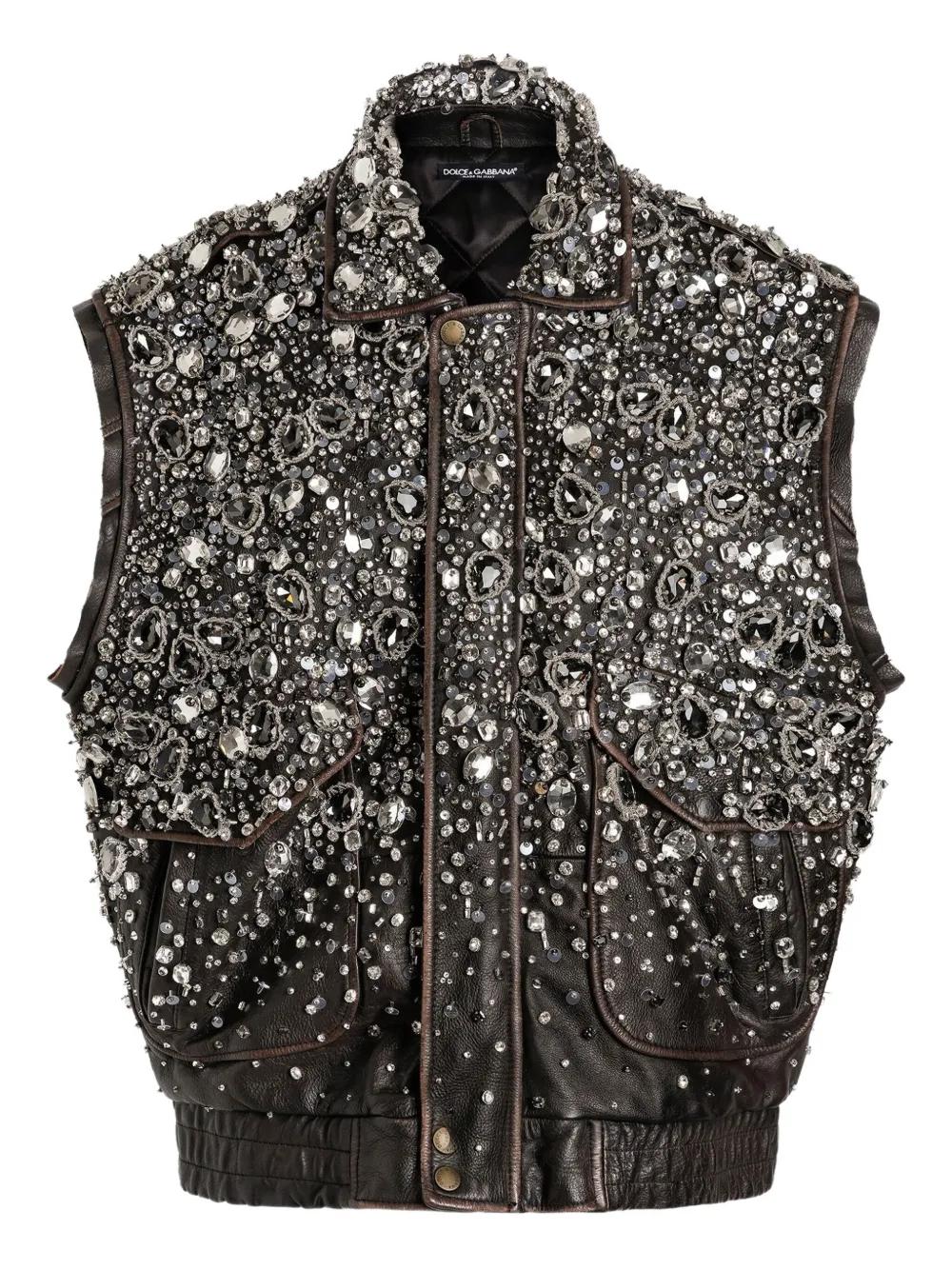 Dolce & Gabbana crystal-embellished leather vest - Brown