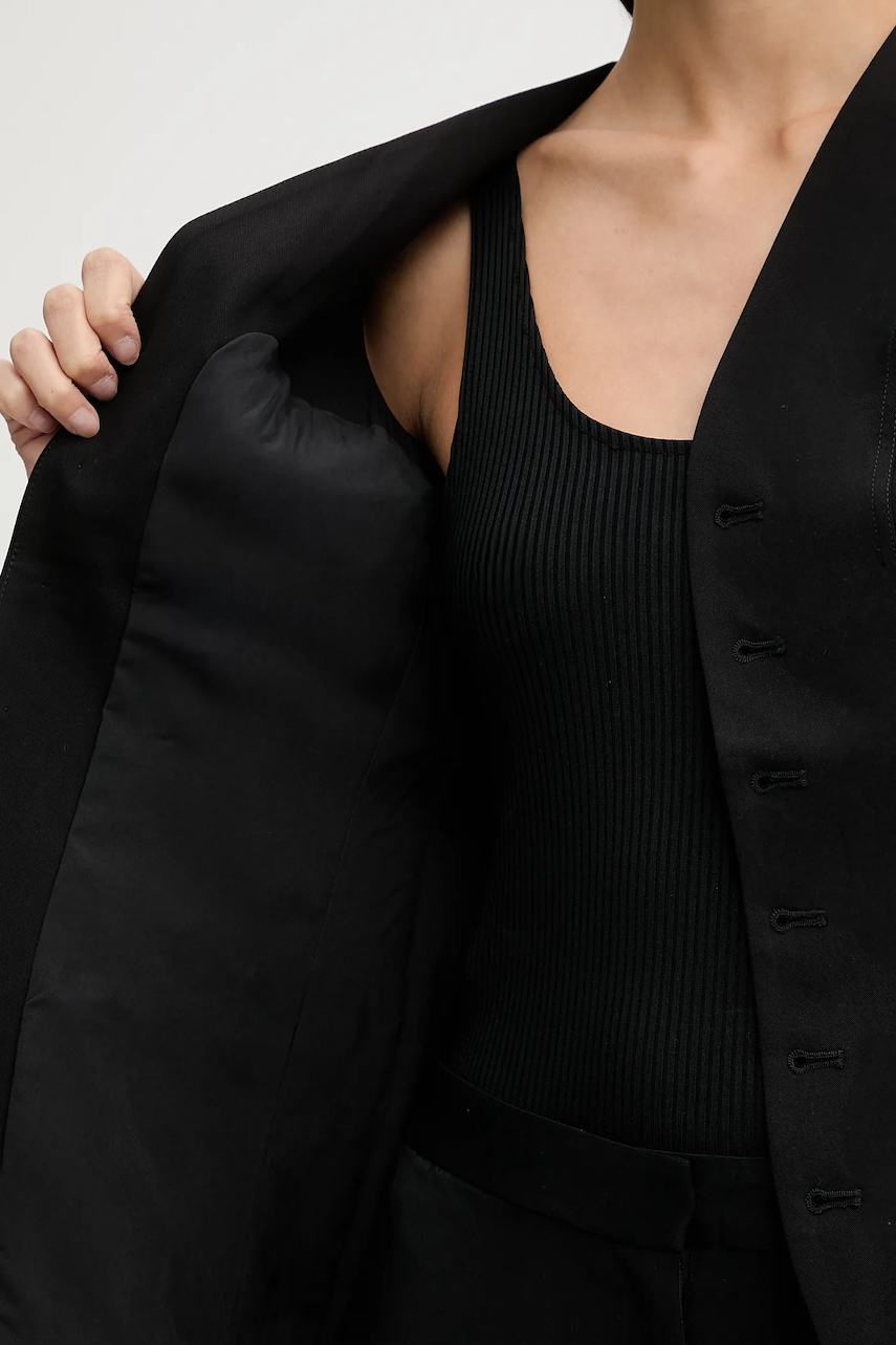 - Ten produkt został częściowo uszyty z poliestru pochodzącego z recyklingu. - Dopasowany, podkreślający sylwetkę fason. - Model na podszewce. - Jednorzędowe zapięcie na guziki. - Wsuwane kieszenie. - Cienka, nieelastyczna tkanina. - Długość: 70 cm. - Szerokość pod pachami: 39 cm. - Wymiary podane dla rozmiaru: S.