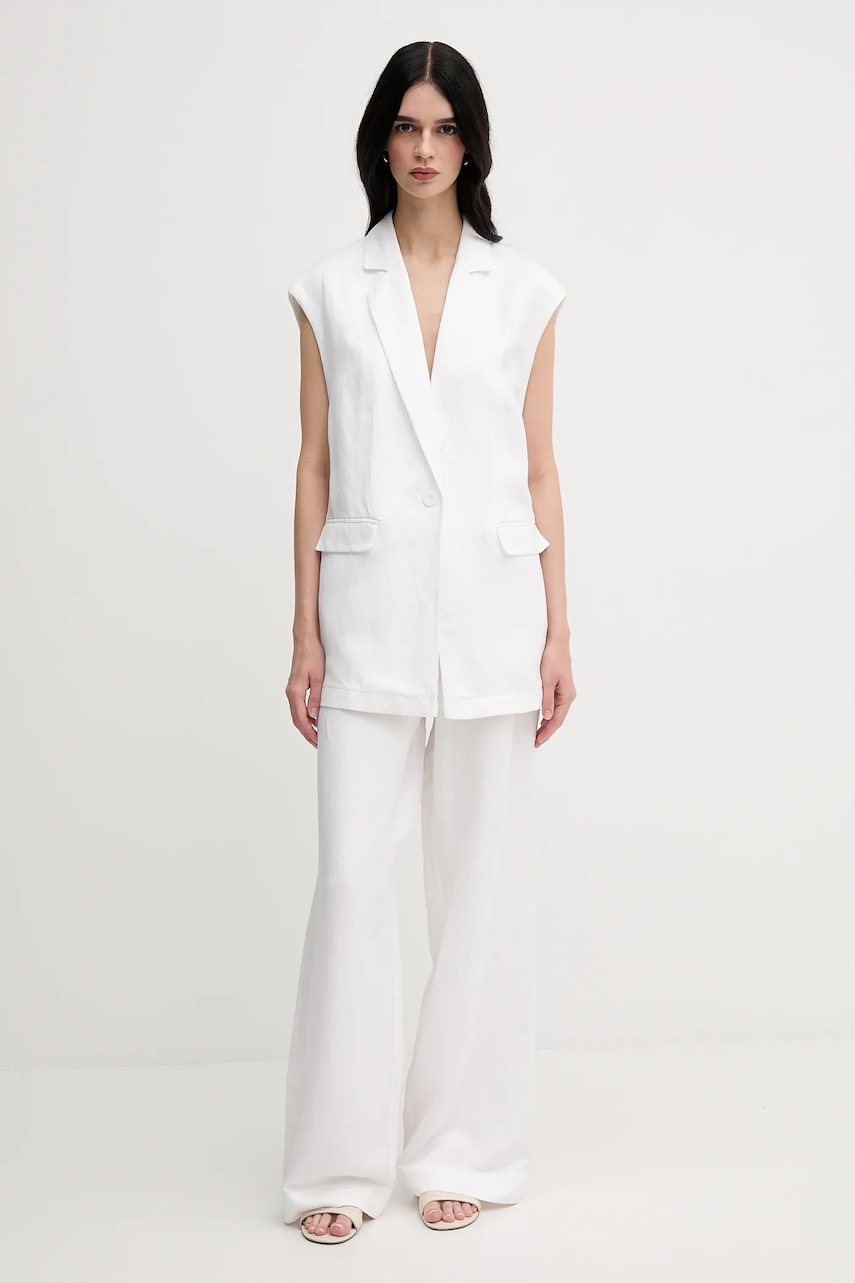 Marc Aurel kamizelka z domieszką lnu kolor biały jednorzędowa 3936-1000-93438