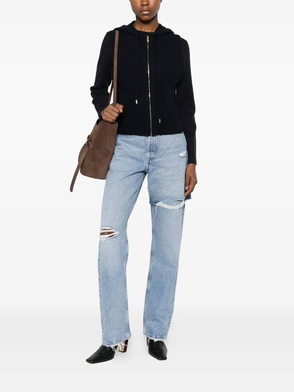midnight blue ribbed knit classic hood zip fastening sleeveless metal hardware