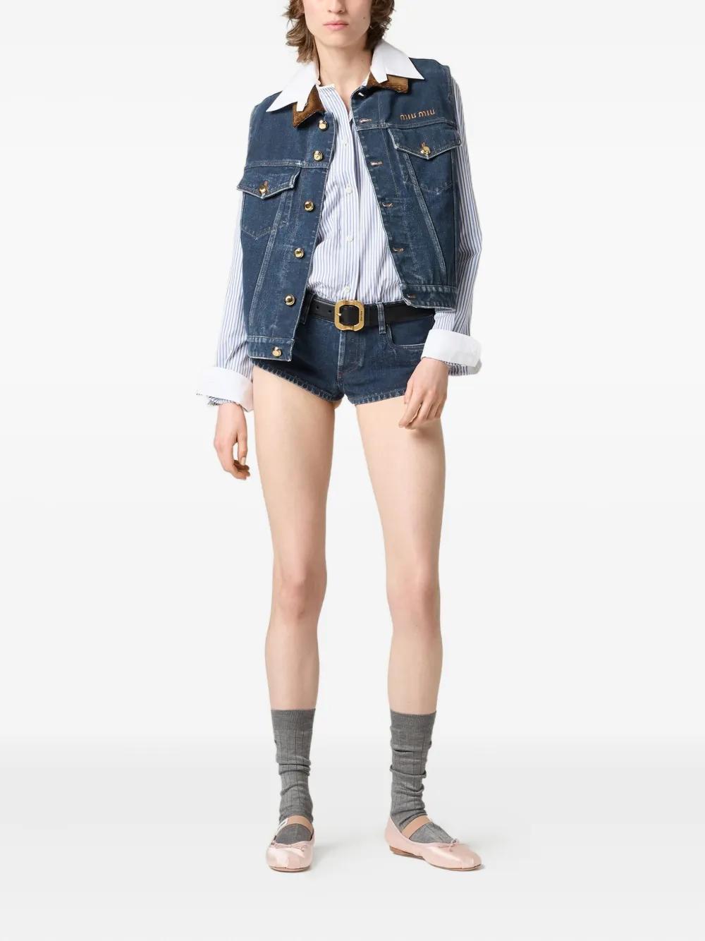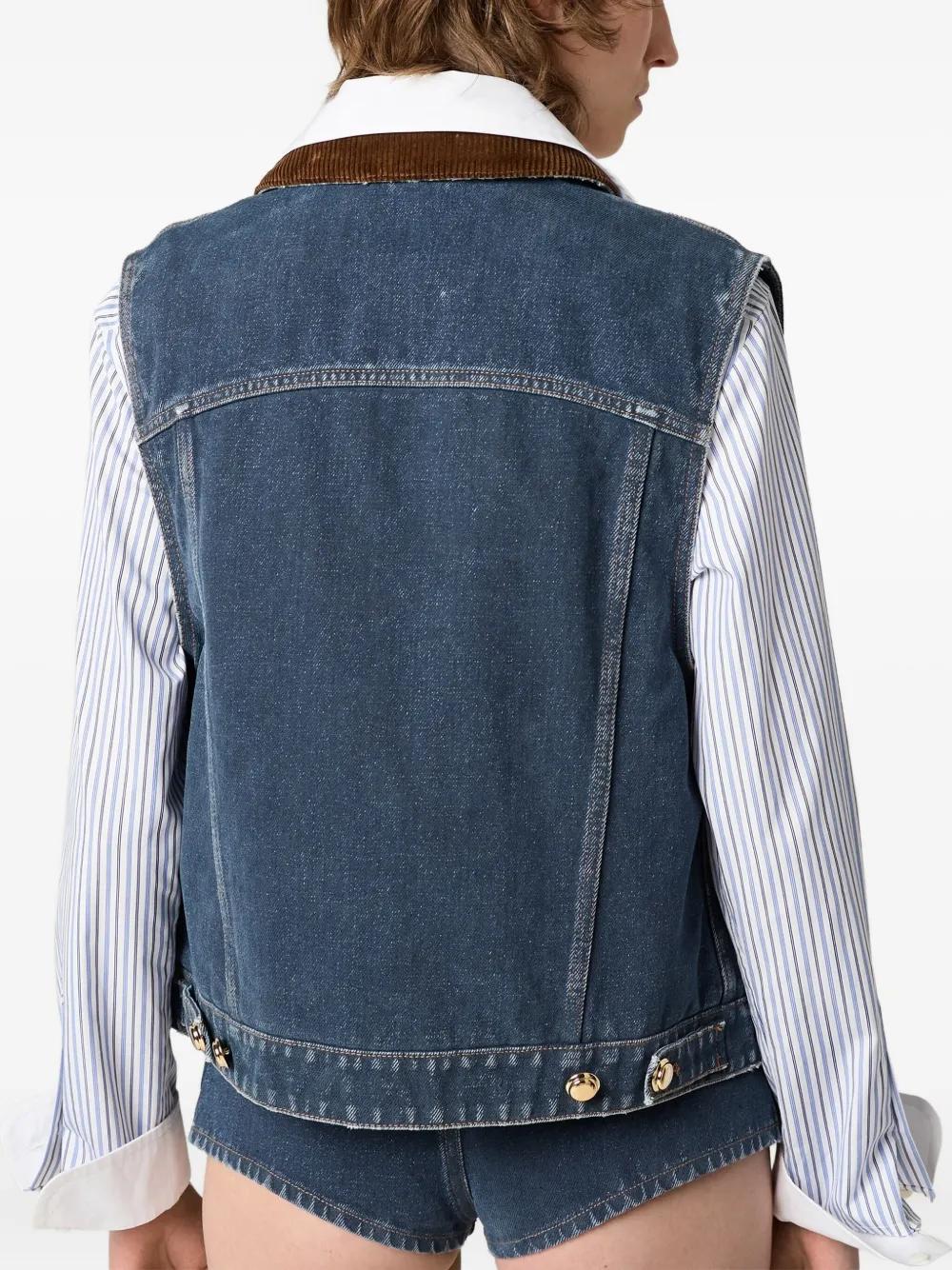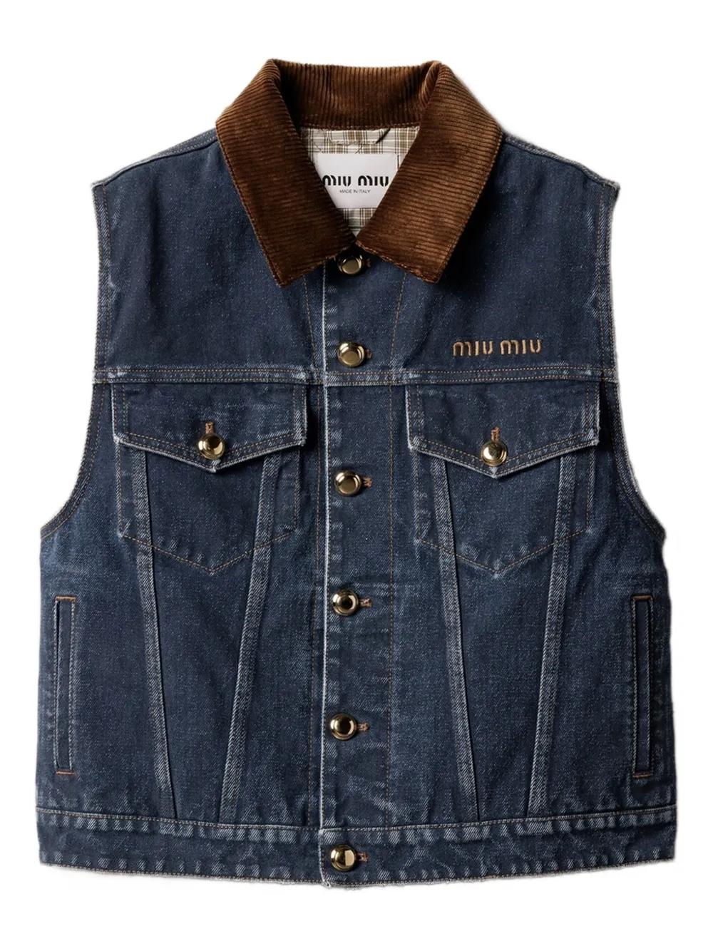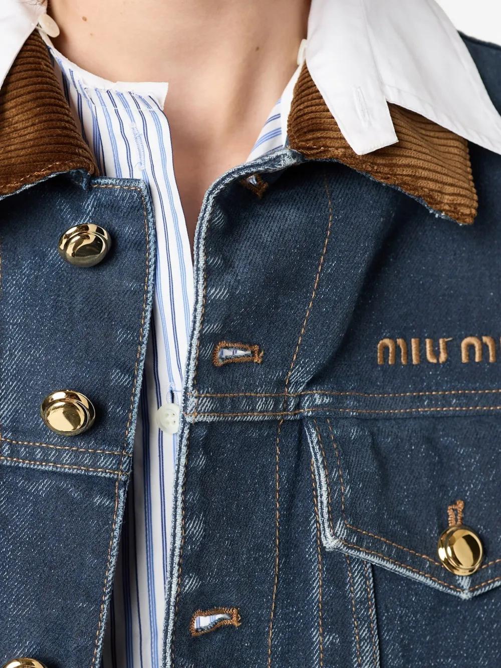 blue cotton corduroy collar button closure flapped pockets embroidered logo