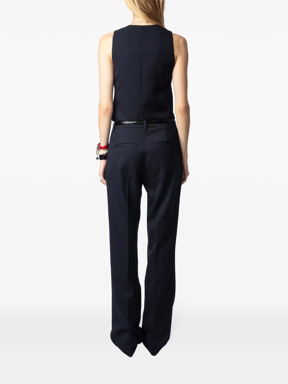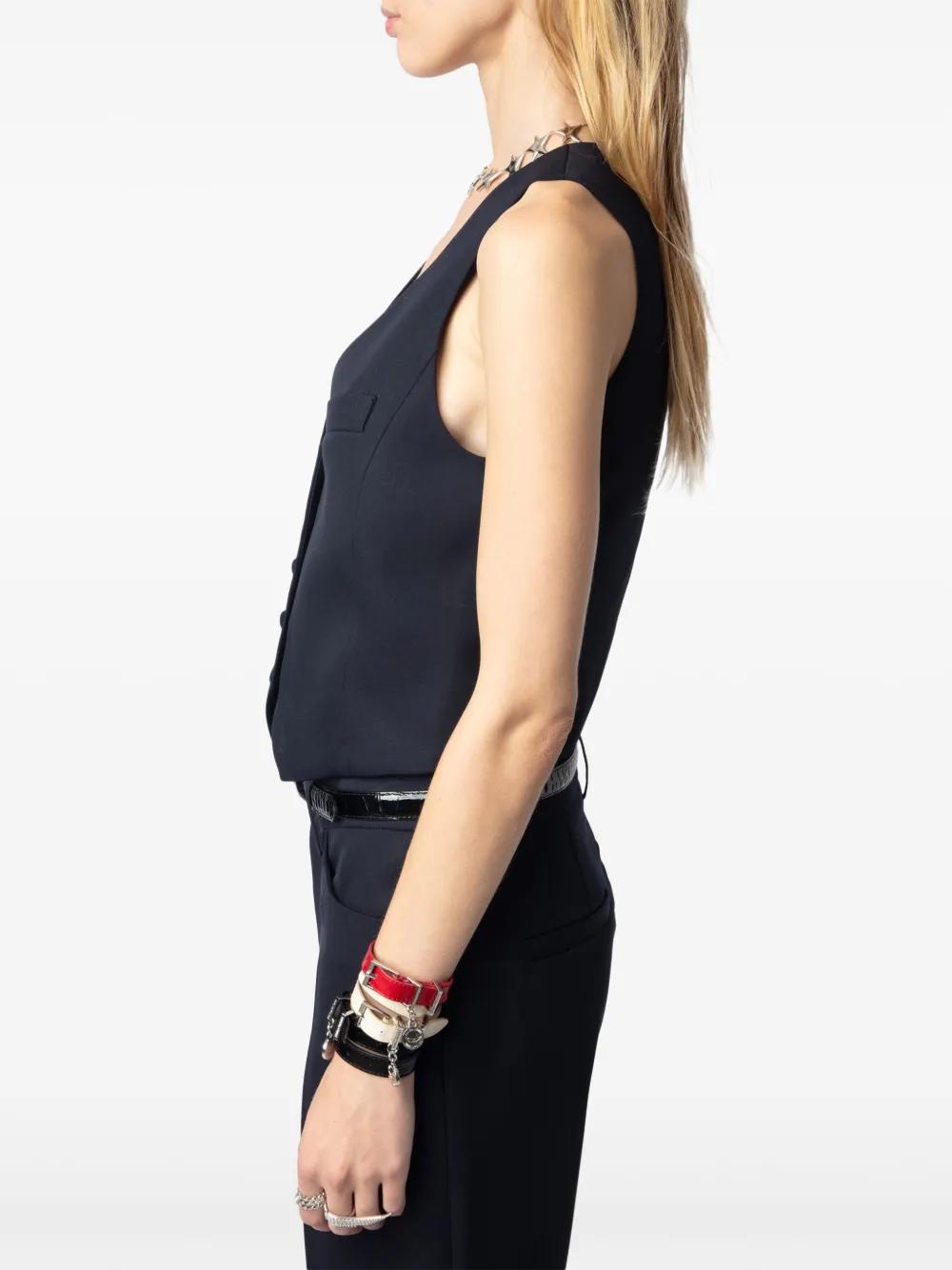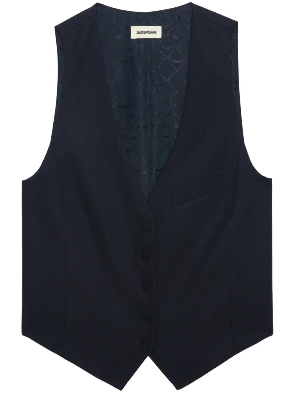 midnight blue front button fastening chest welt pocket dart detailing high-low hem