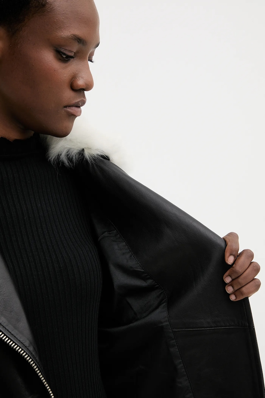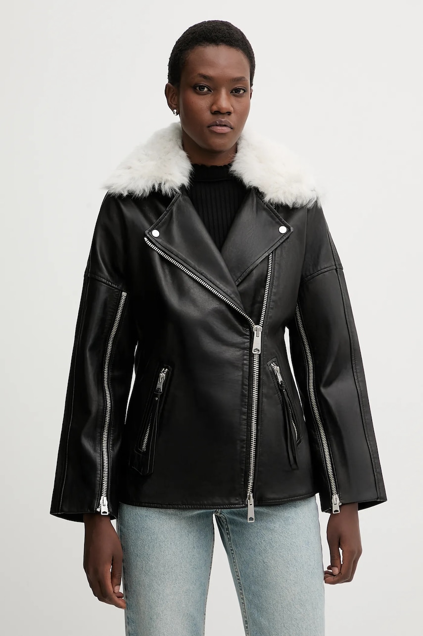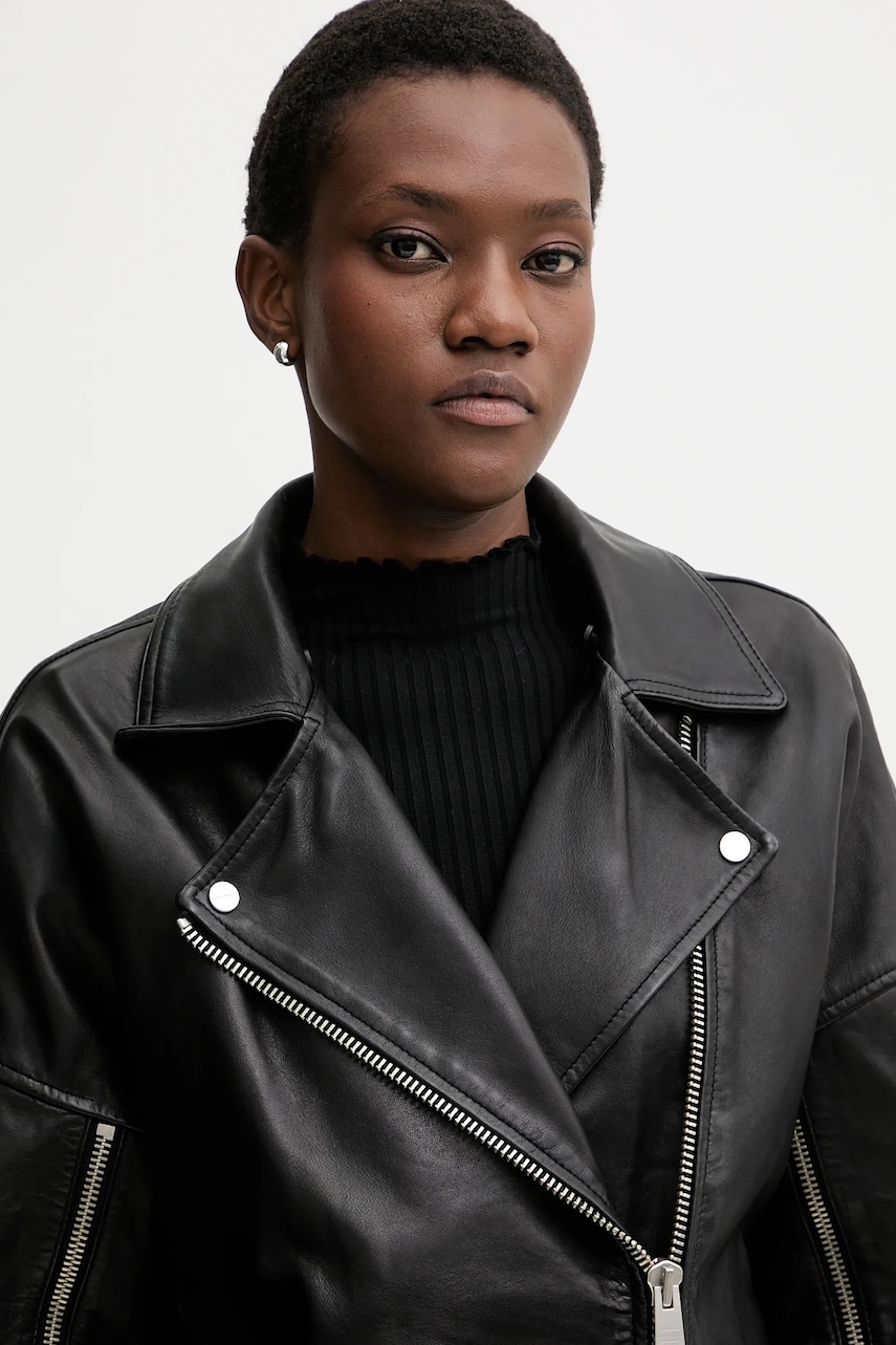 AllSaints ramoneska skórzana VENDRA kolor czarny przejściowa oversize W021LD
