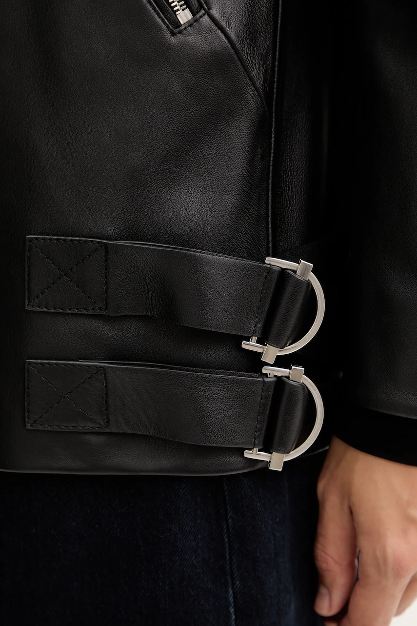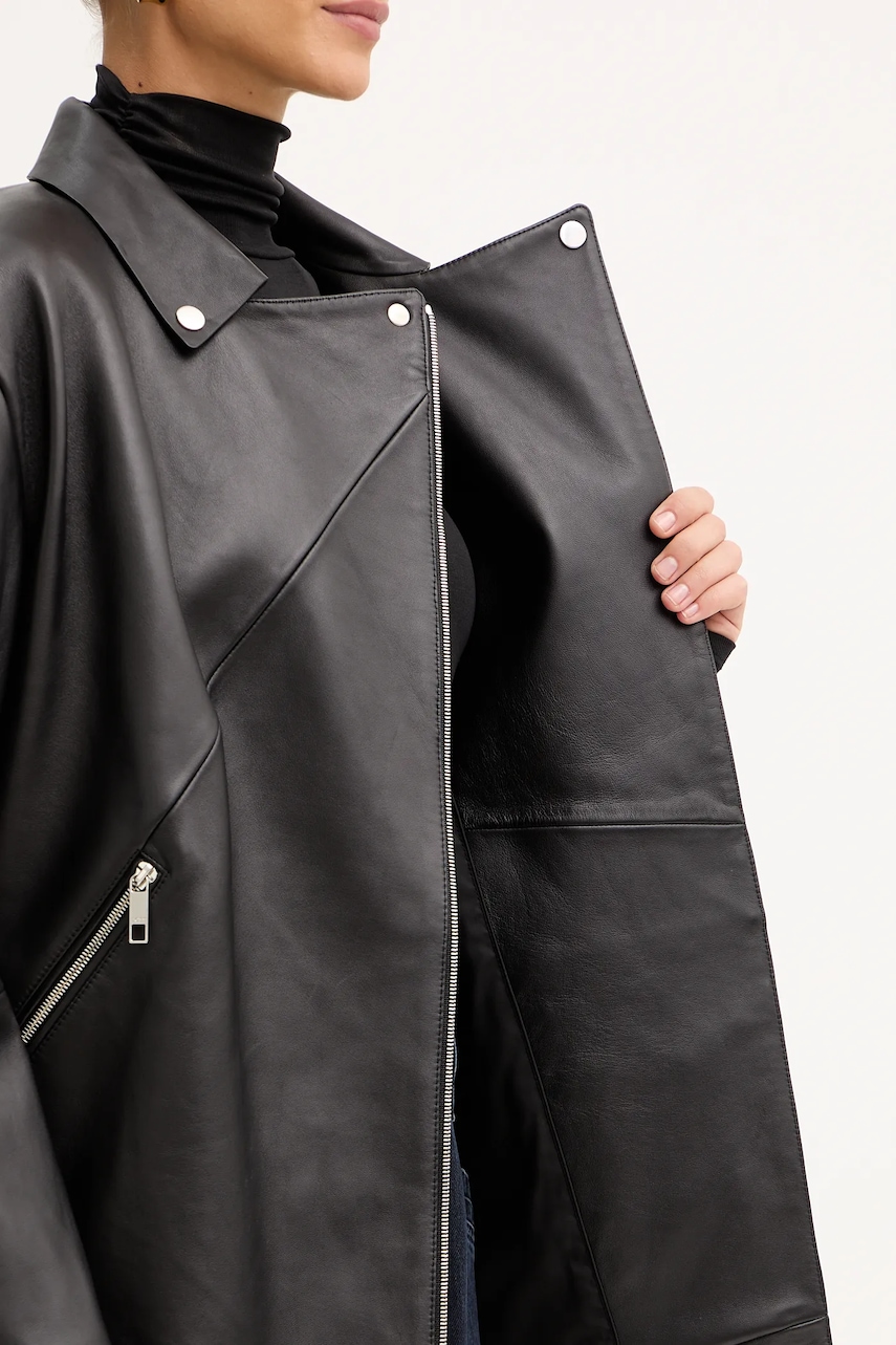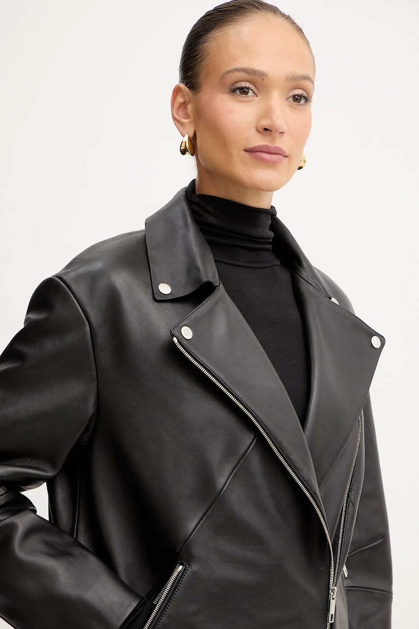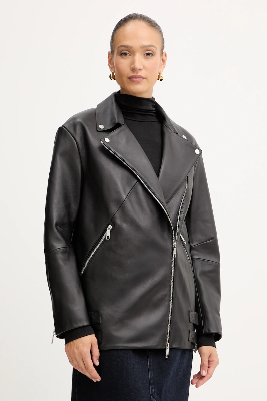 BOSS ramoneska skórzana kolor czarny przejściowa oversize 50547474