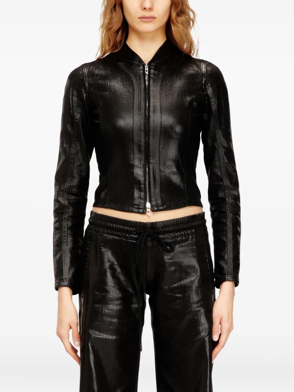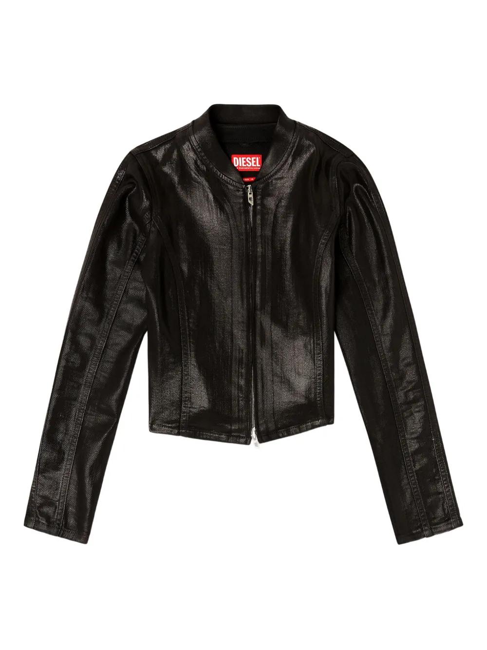 black close-fitting round buttoned collar zip fastening rounded shoulders cropped hem
