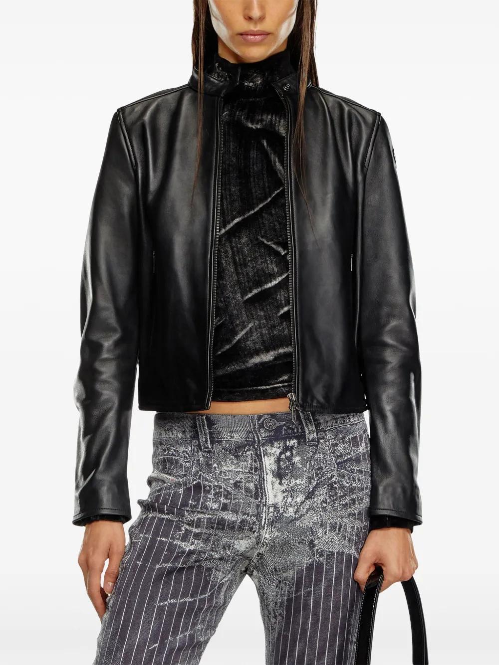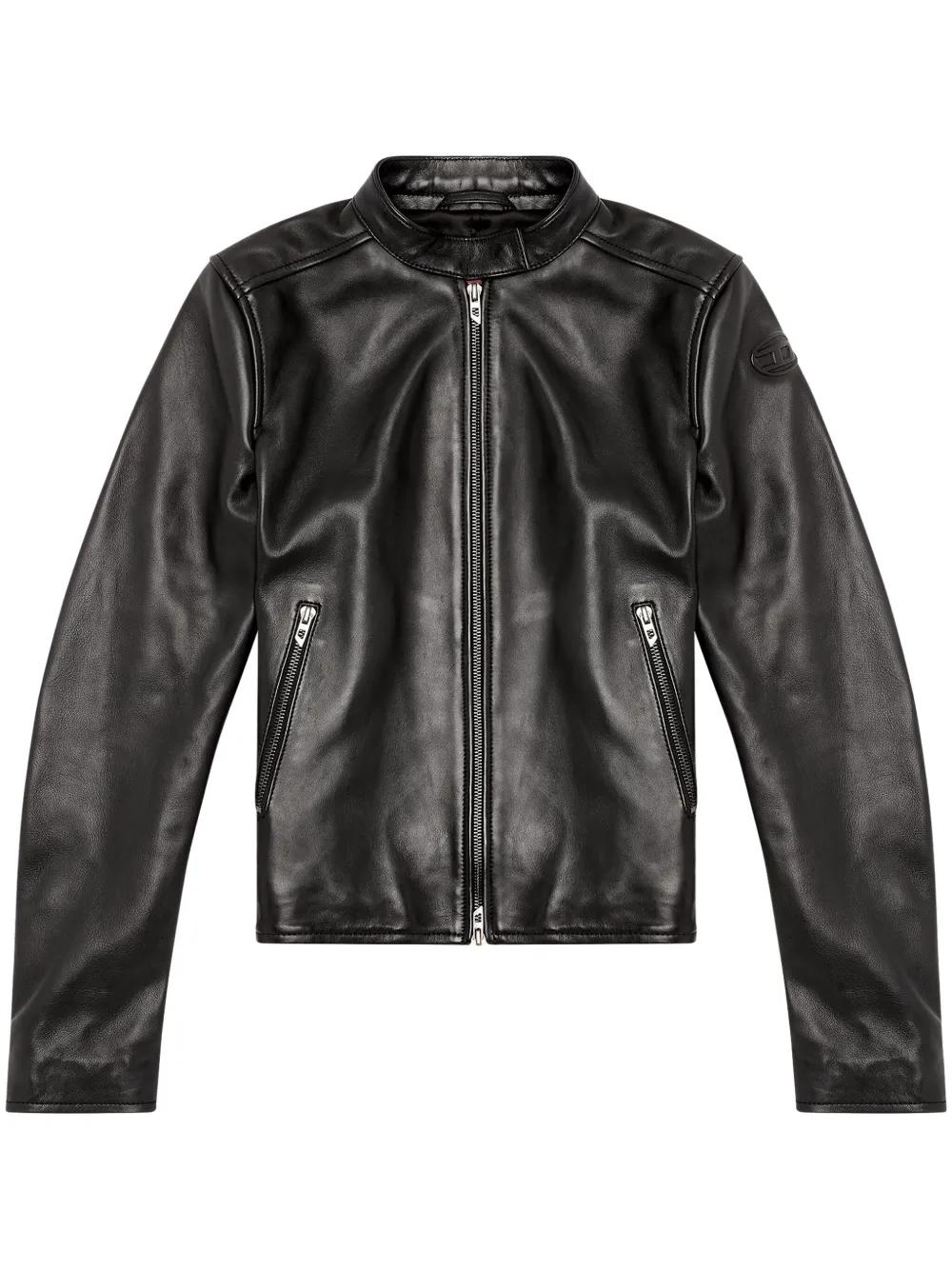 black lambskin debossed logo at the sleeve mock neck front zip fastening long sleeves cuff zips two side zip-fastening pockets straight hem