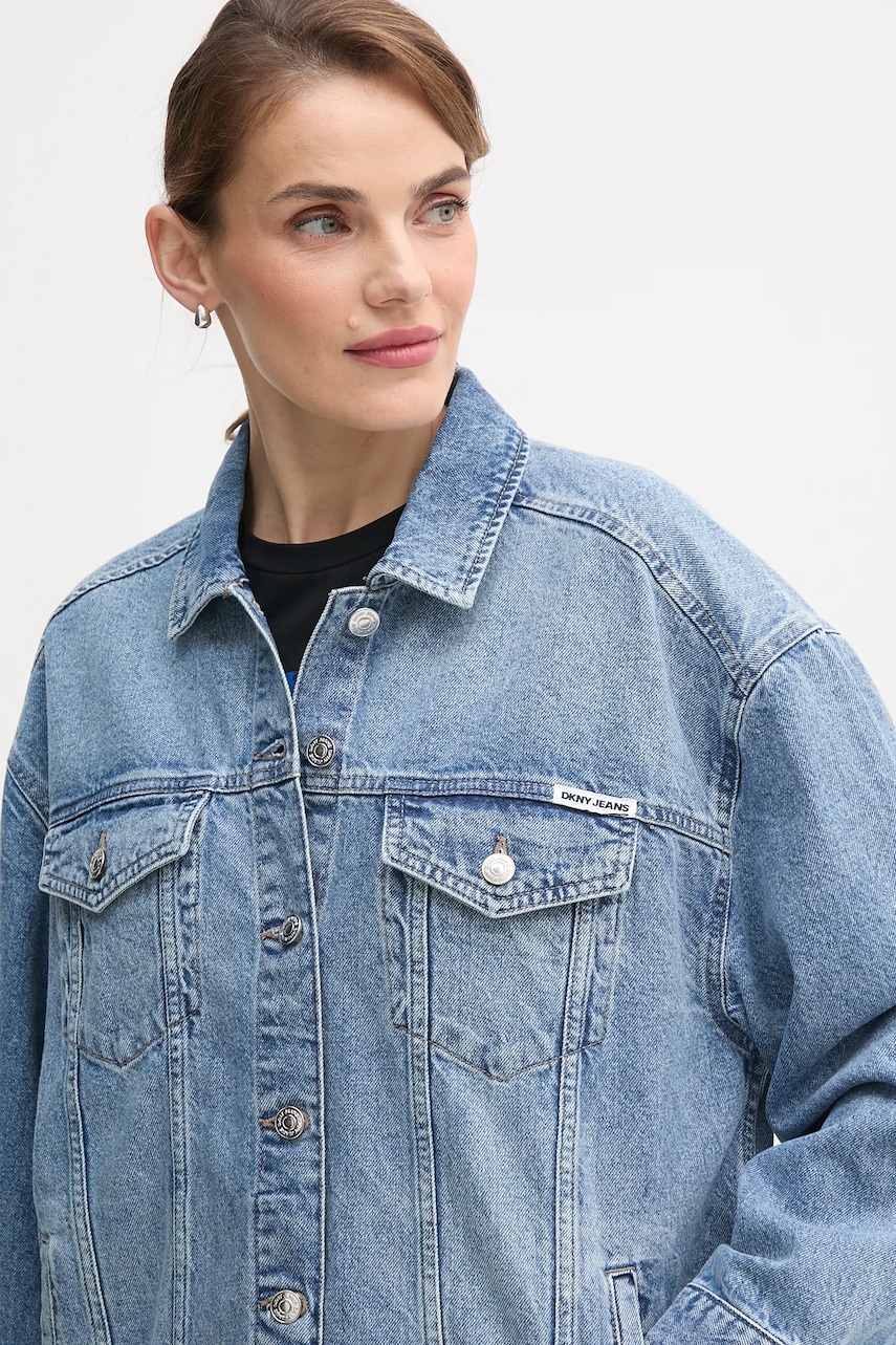 Dkny kurtka jeansowa kolor niebieski przejściowa DJ5J6201