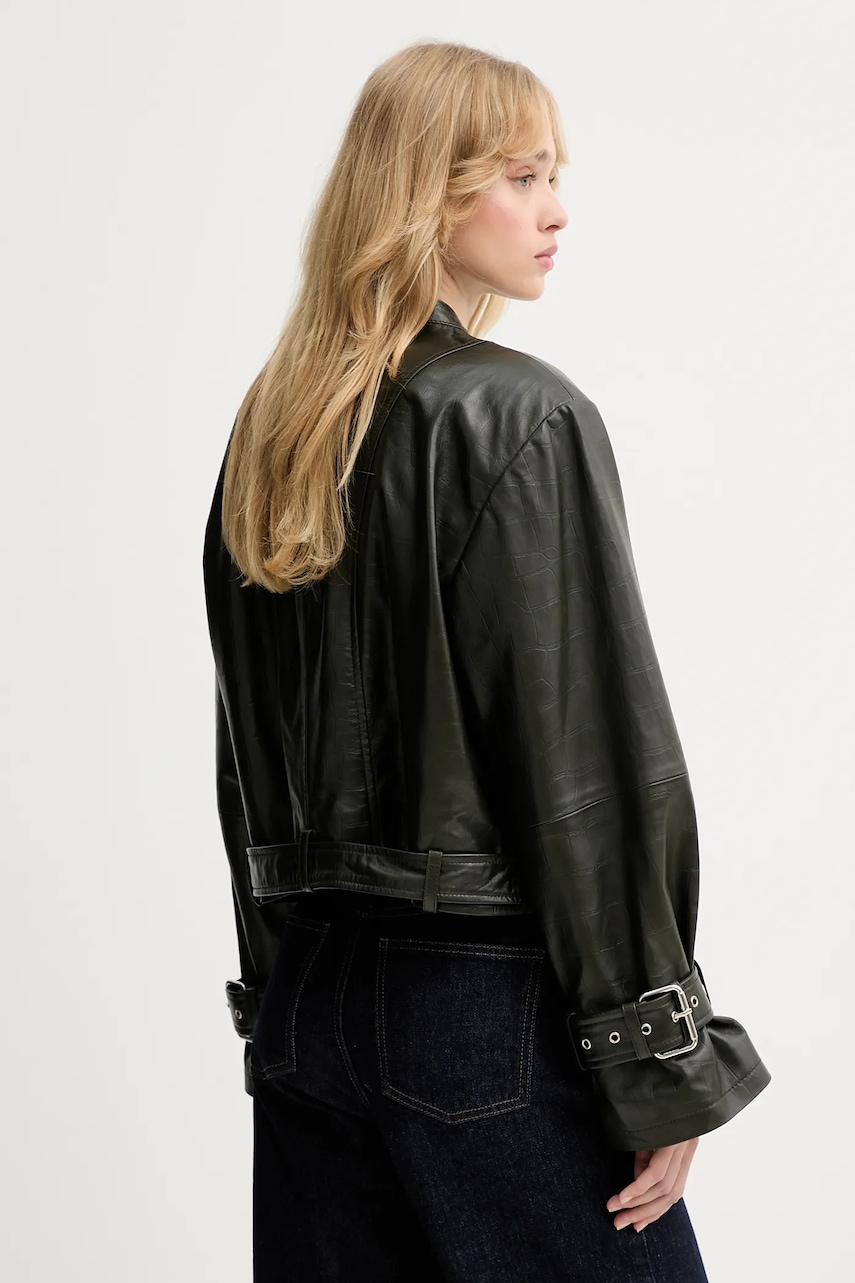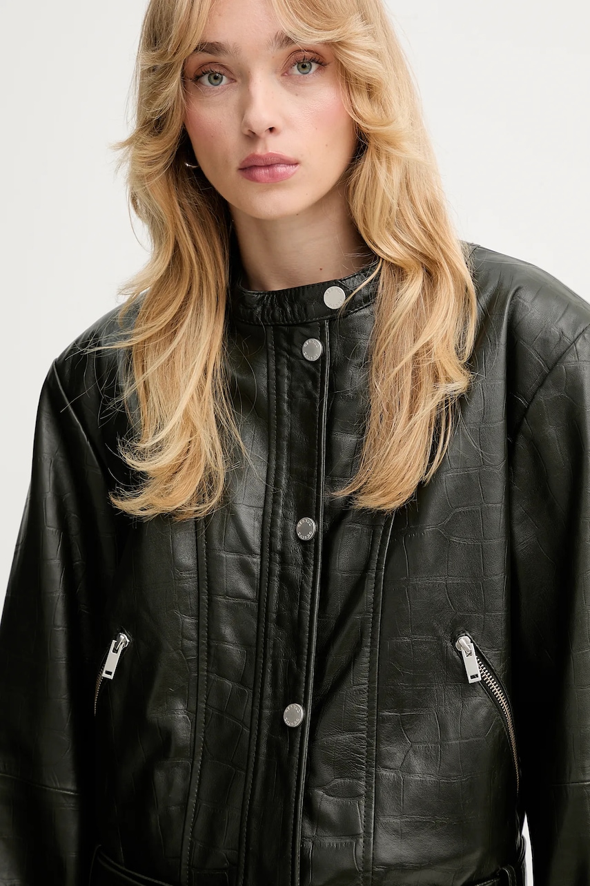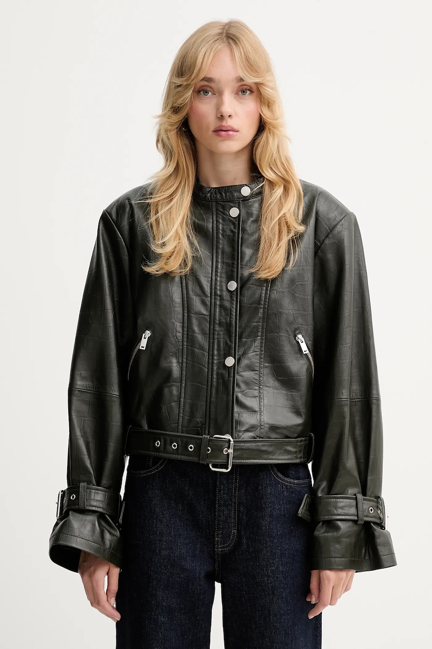 Gestuz kurtka skórzana kolor zielony przejściowa 10910734