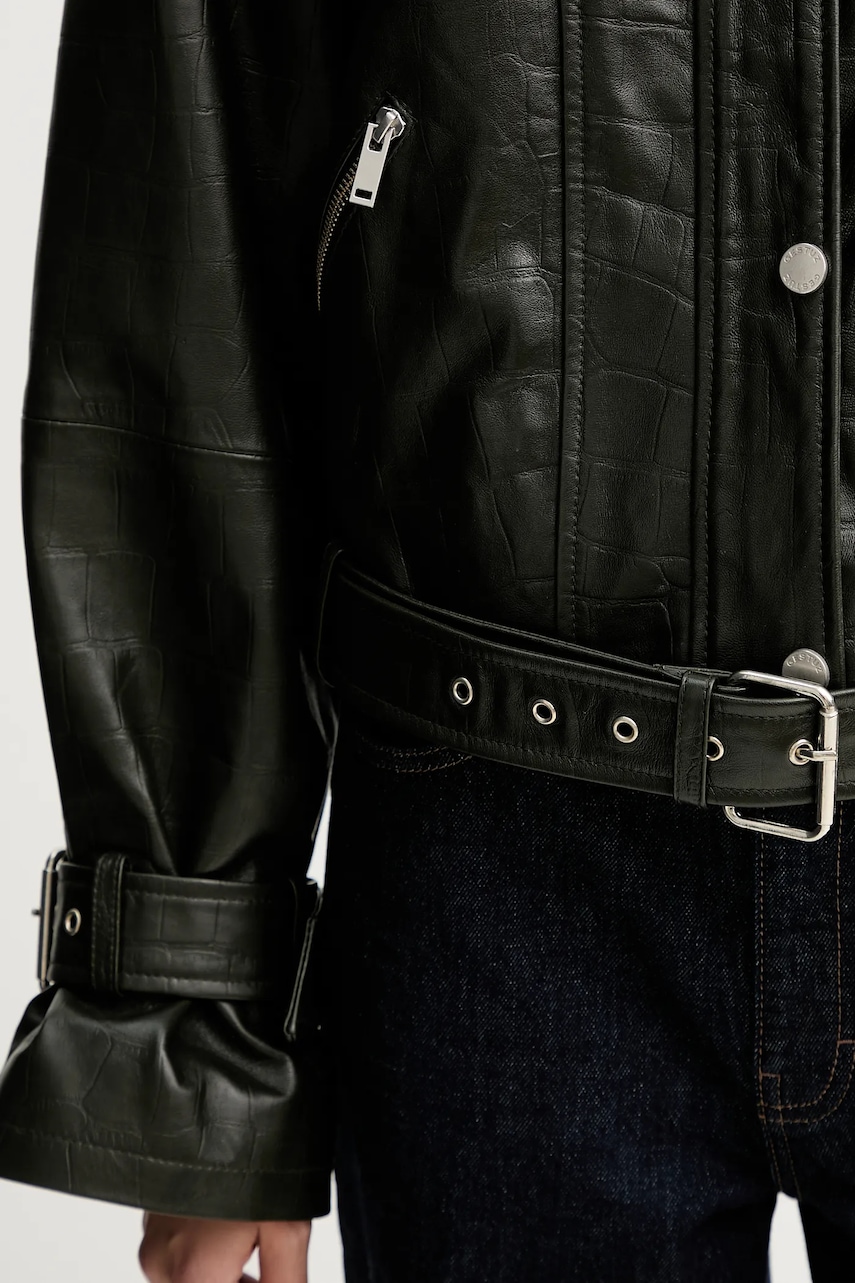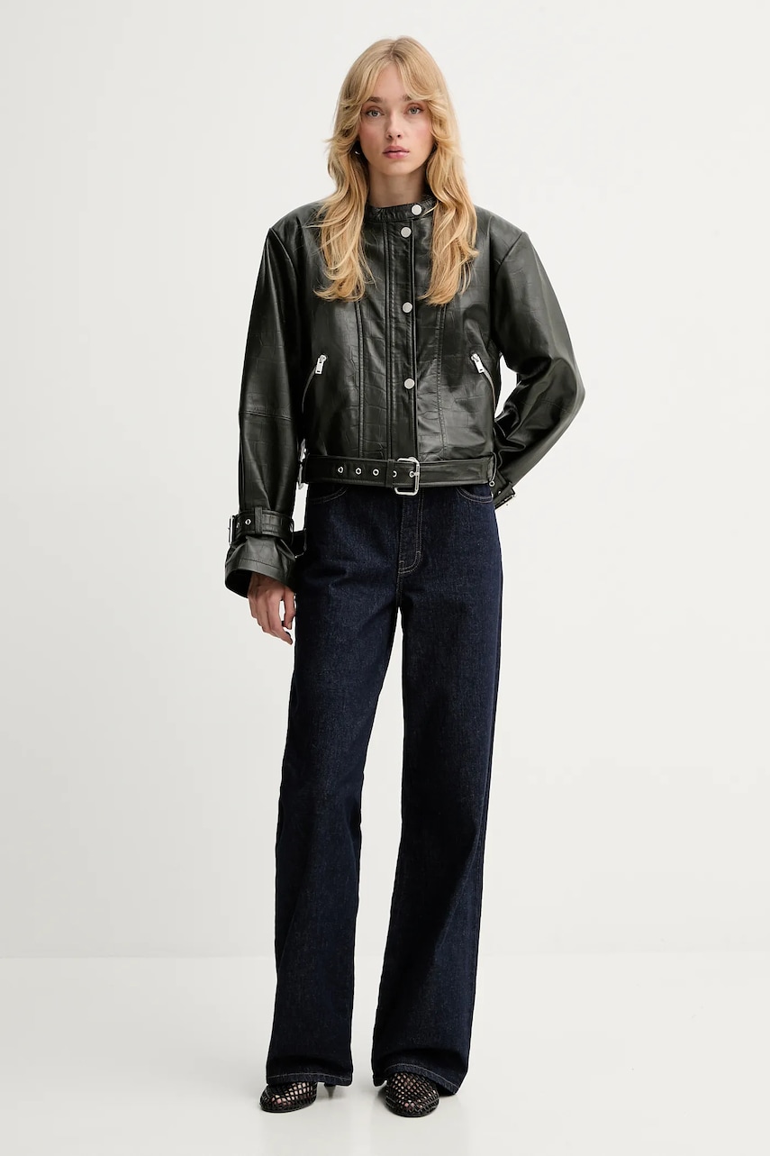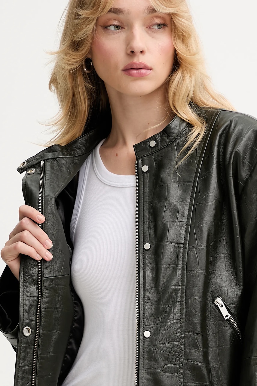 Gestuz kurtka skórzana kolor zielony przejściowa 10910734