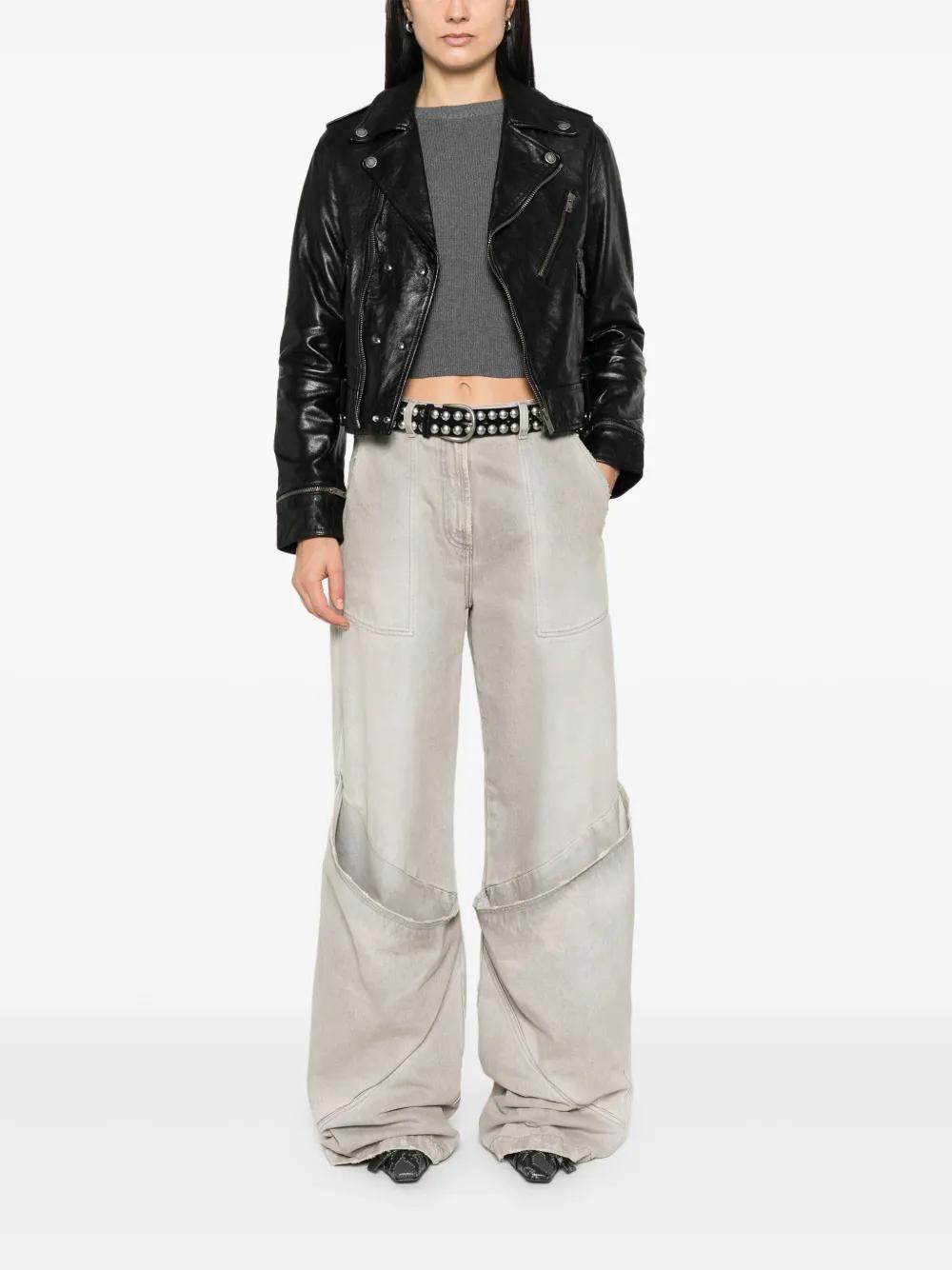 black off-centre front zip fastening zip-fastening chest pocket two side flap pockets belt loops