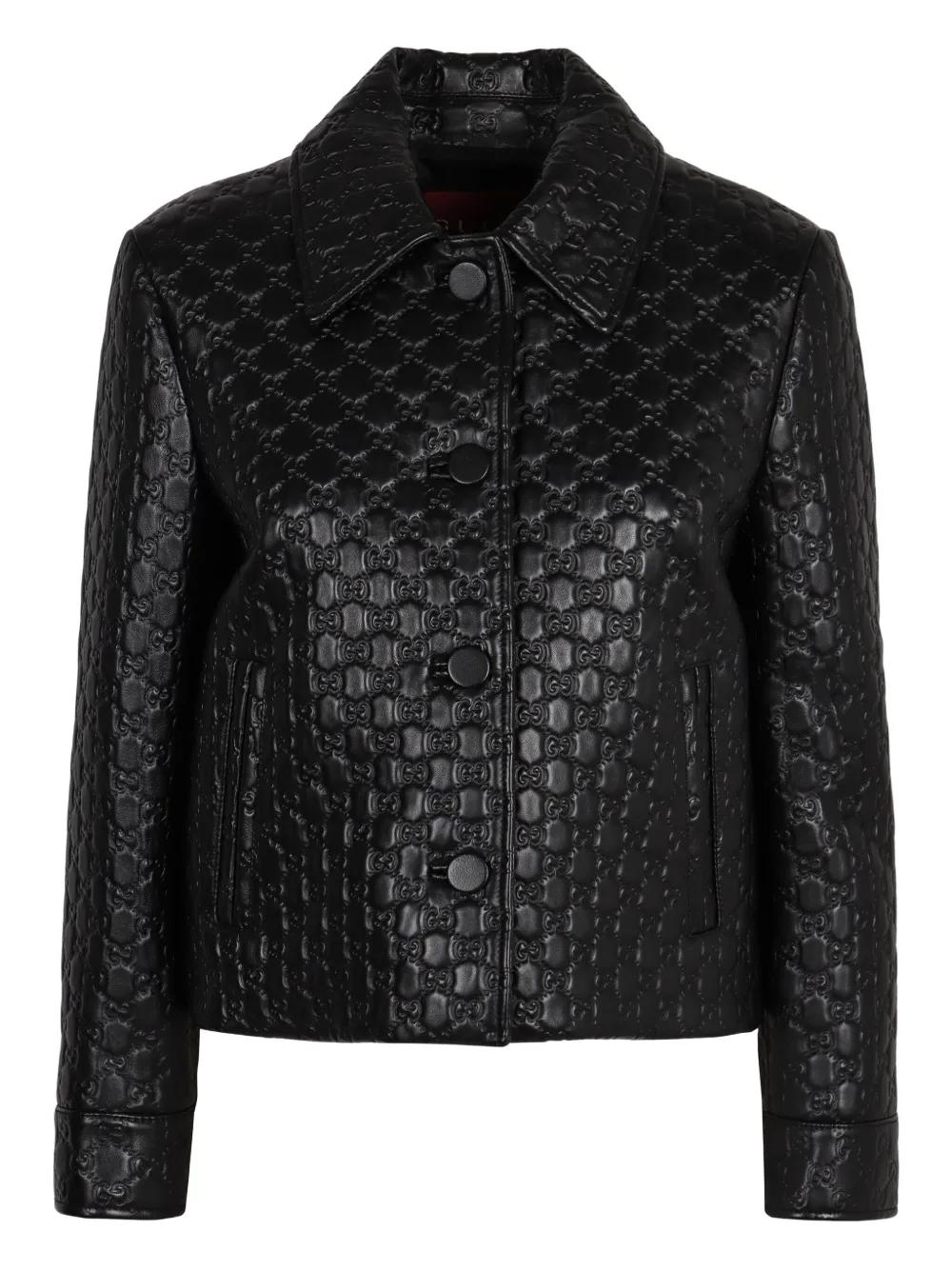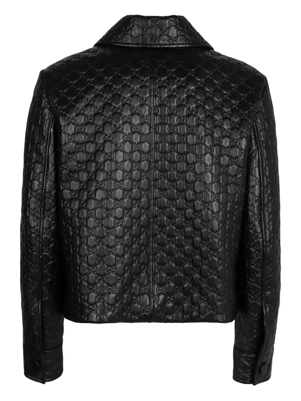 black embossed GG pointed collar button fastening side pockets long sleeves