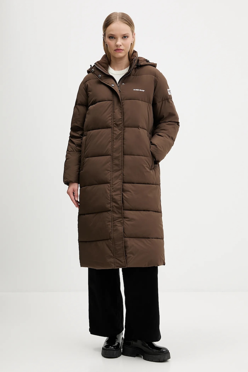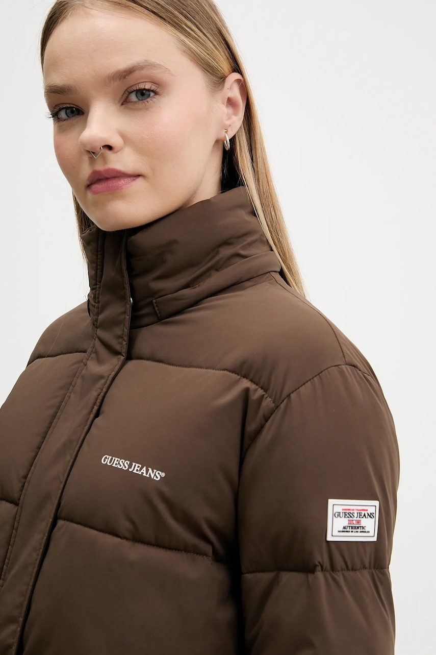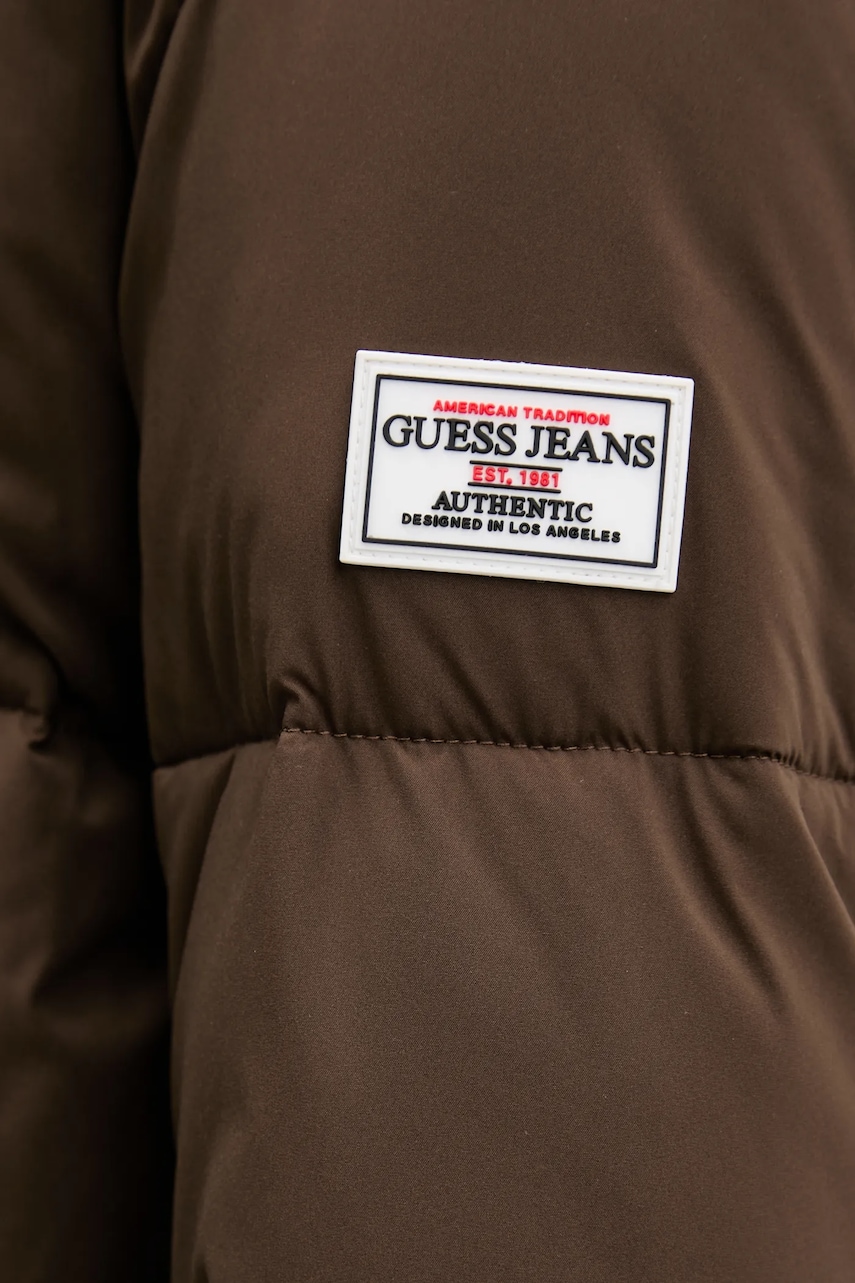 Guess Jeans kurtka damska kolor brązowy zimowa oversize W4BL26 WGII2